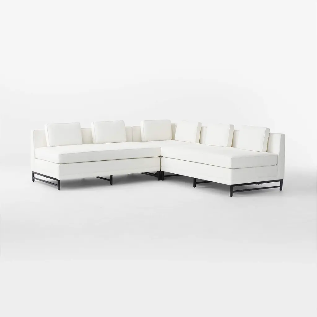 Like all Paul McCobb designs, this sectional sofa is quintessentially midcentury with its clean lines, simple silhouette and attention to detail and craftsmanship. Sectional features luxe cotton-blend upholstery in an ivory micro-bouclé, black satin metal legs and an FSC ®-certified frame. The design's large scale makes quite the statement when arranged as a full sectional, and individual pieces are versatile enough to work well on their own. CB2 exclusive.
