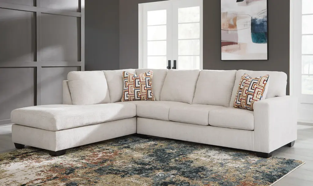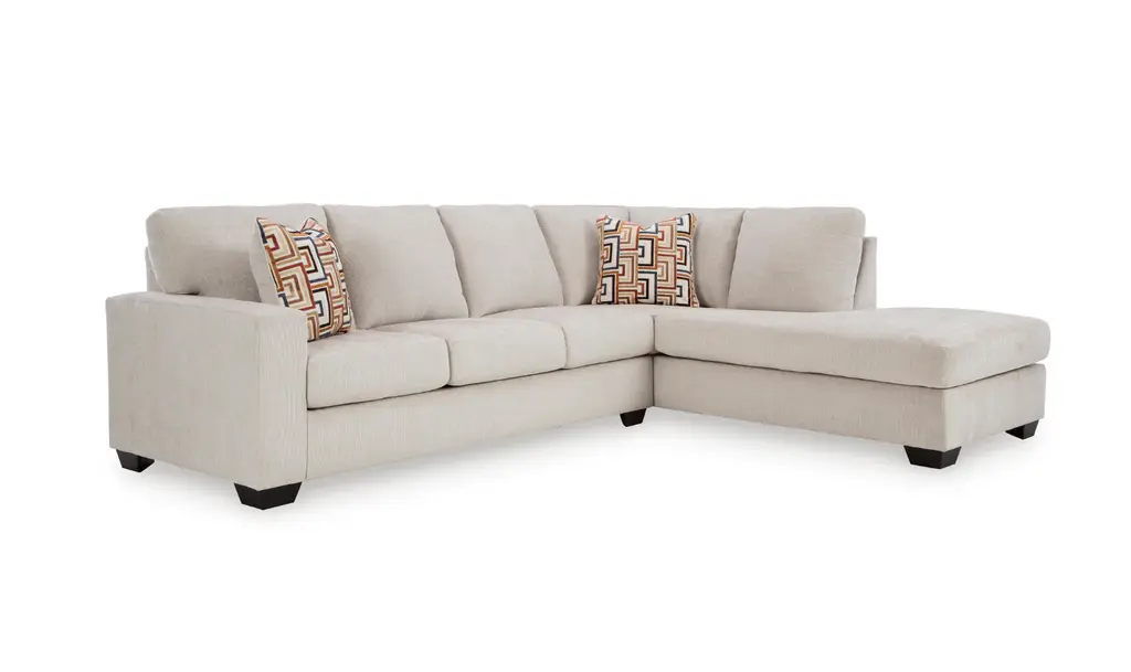 Transform your living space with the Modern Heritage Aviemore 2-Piece Fabric Sectional Sofa with Chaise, a perfect blend of sophisticated style and everyday comfort. Designed to complement contemporary interiors, this spacious sectional features a neutral stone-colored upholstery, allowing you to personalize your décor with bold accent pieces. The included eclectic accent pillows in Spice Orange and Ink tones add a vibrant contrast, making your space feel warm and inviting. Crafted for long-lasting durability, this sectional boasts a corner-blocked frame and a platform foundation system that resists sagging 3x better than traditional spring systems. Its high-quality foam cushions wrapped in poly fiber provide exceptional support, ensuring a plush, sink-in feel every time you sit. The right-arm facing chaise is perfect for stretching out and relaxing, while the left-arm facing sofa provides ample seating for family and guests. Whether you're hosting a movie night or lounging after a long day, this sectional delivers both comfort and contemporary charm.