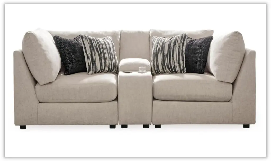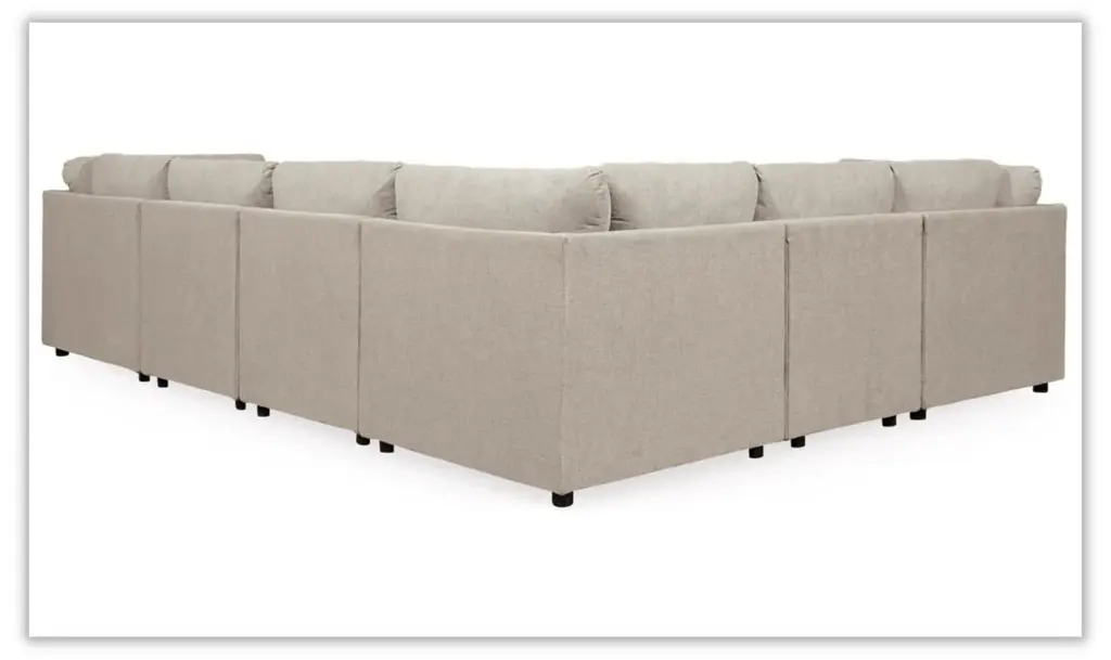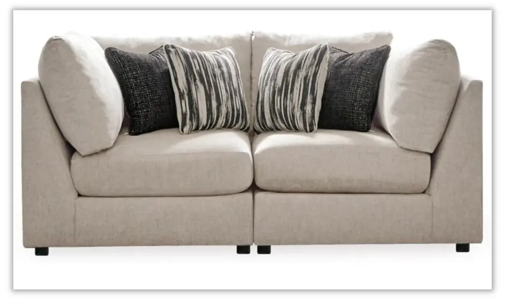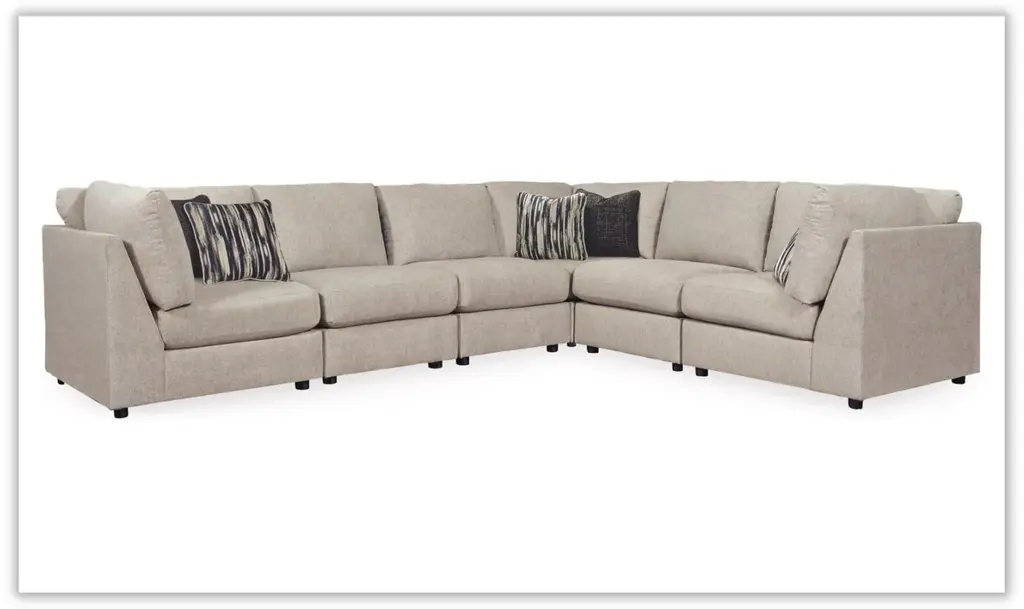 Introducing the Kellway Sectional, where casual-contemporary style meets practical modular design. This sectional is the perfect choice for those seeking both high style and indulgent comfort in their living space. Crafted with a corner-blocked frame for durability, you can trust that this sectional is built to last. The high-resiliency foam cushions, wrapped in thick poly fiber, provide a plush and supportive seating experience. Whether you're entertaining guests or enjoying a cozy night in, you'll appreciate the comfort this sectional offers. The Kellway Sectional also boasts a modern aesthetic with its sleek design and wedge-cut backrests. Included decorative pillows add a touch of style to the mix. Upholstered in durable polyester fabric and featuring exposed legs with a faux wood finish, this sectional is both chic and practical. Elevate your living room with the Kellway Sectional and enjoy the perfect blend of contemporary design and comfort.