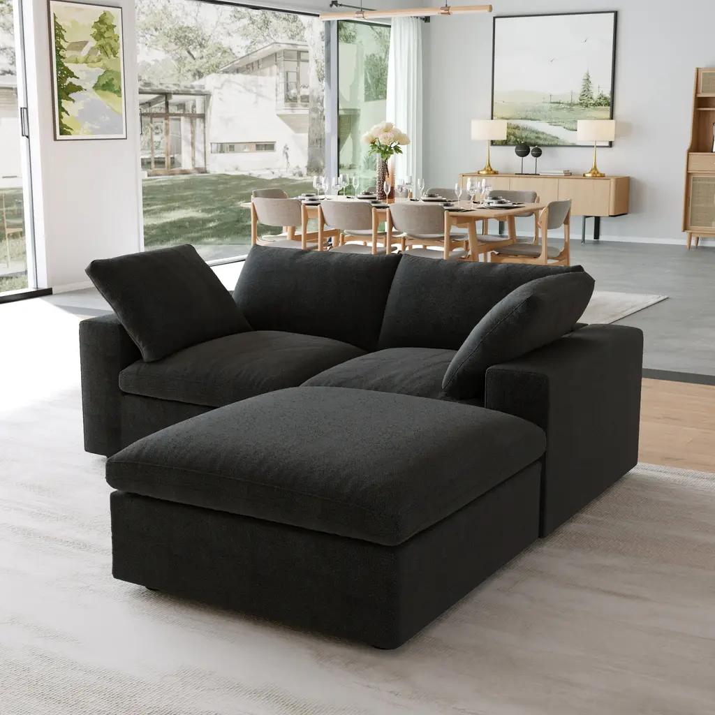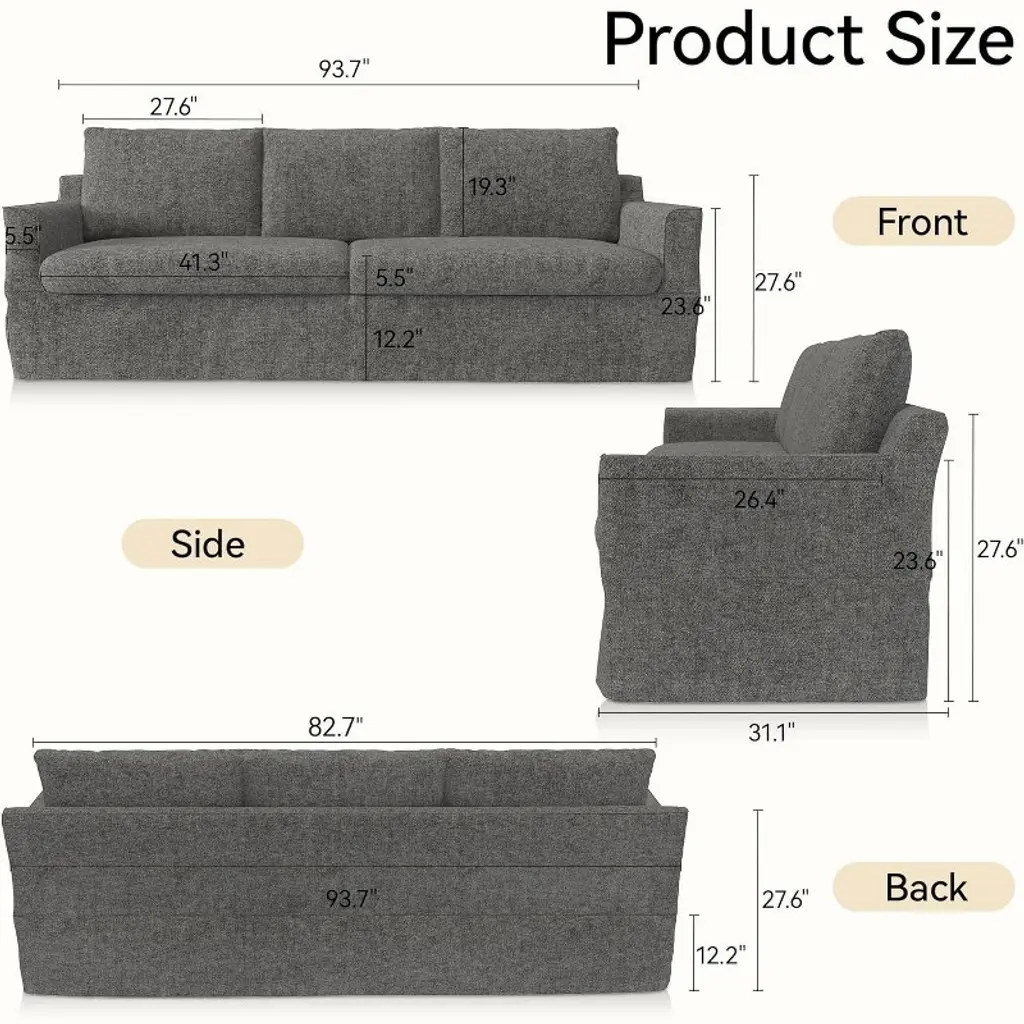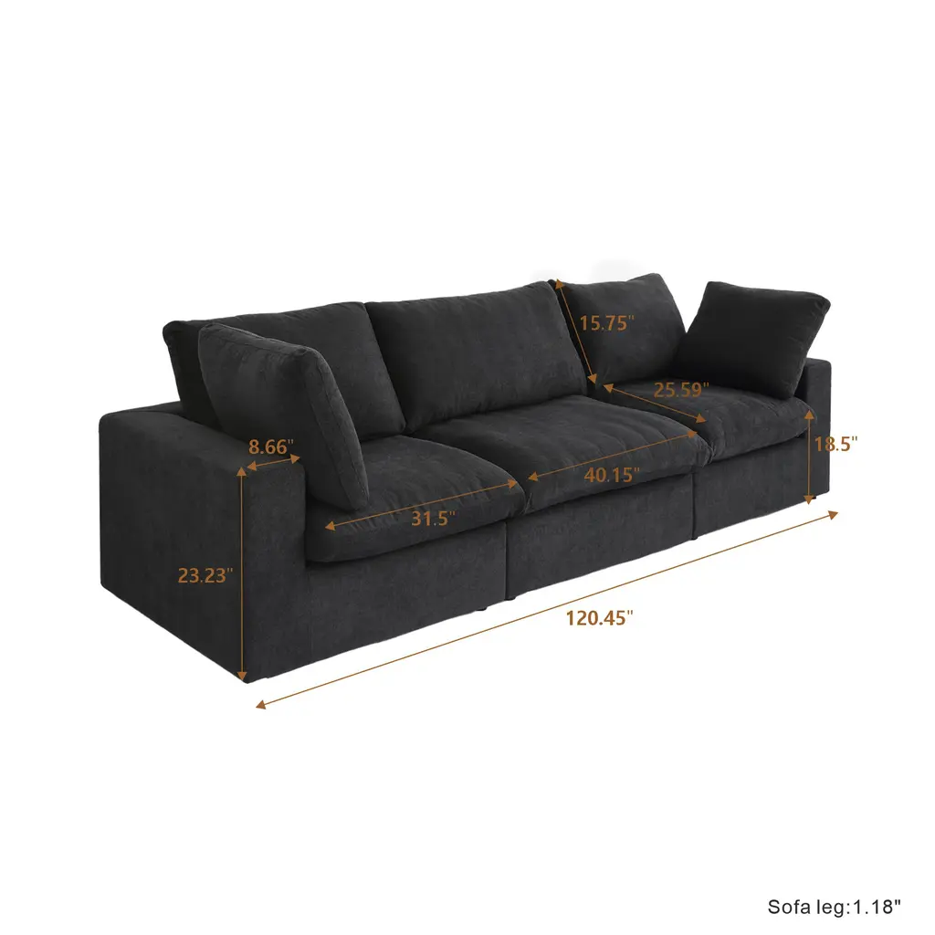 Details:[Comfortable Couch] Made of high-quality hemp velvet, the 4-seat couch is wear-resistant, wrinkle resistant, hard to deform, and as new as after long use. Built in pine frame for moderate softness and hardness, comfortable sitting, restoring natural relaxation.[Fashion & Ergonomics] The cushion, backrest, and support frame of the sectional couches sofas are all perfectly ergonomic, making it a perfect living room furniture set suitable for most types of decorative styles. From the backrest to the seat cushion, a comfortable experience surrounds your back, waist, buttocks, and legs, fully allowing your body to rest and relax on top.[Durable and sturdy] This living room couch has a built-in pine frame structure, which increases the comfort of sitting posture and the stability of the 3-seat sofa, with moderate hardness. Our living room modular sofas couches will definitely leave a deep impression on people. You can rest assured on the sofa and enjoy the fun of family or social gatherings.[Easy Assembly] Assembly instruction and assemble tools are included, easy to install. You can complete the assembly of the modern convertible sectional couch within 30 minutes and start enjoying the wonderful leisure experience brought by the sectional sofa.[Size Information] Overall Size: 120.45"L x 40.15"W x 23.23"H. Sectional couch for living room, comfy cloud couch with cushion covers removable. A comfortable sofa in the living room to enjoy leisure time with family and friends. Note:Hand-measure, it is normal that has slightly error.Due to display and lighting, the true color may be little variatable with the website picture.When you take apart the package and found it is not the color that you need, don't worry, please find the sofa cover and assemble this sofa and put on this sofa cover, and it will be color that you purchased.