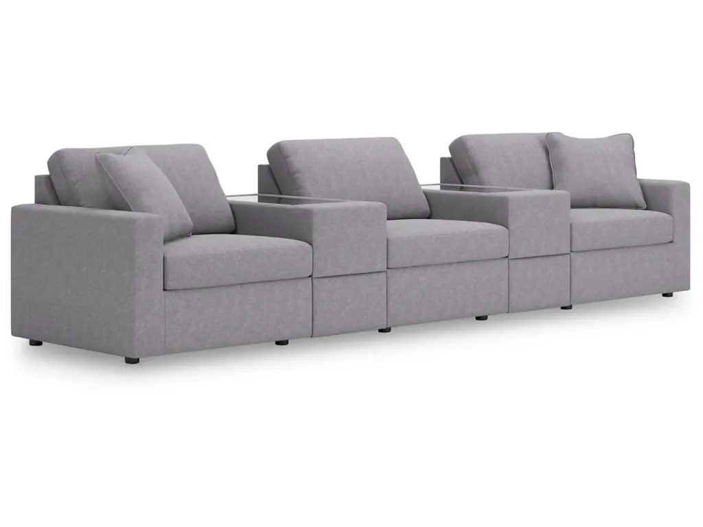 Looking cool and contemporary is great. But when it comes down to it, you’re all about low-maintenance lounging. With the performance fabric on the Modmax sectional with console, cleaning spills is a breeze. Its customizable modular design caters to your ever-changing needs. The console’s plexiglass top is the perfect beverage perch during family movie night or when guests drop by. And the lower pull-out drawer is just the spot for media storage and whatever else tickles your fancy. Weight 361.000 lbs. (162.45kgs.)