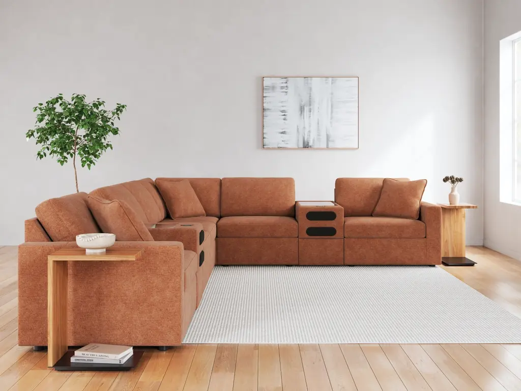Modmax 8-Piece Modular Next-Gen Nuvellatm Performance Fabric Sectional With Audio Consoles