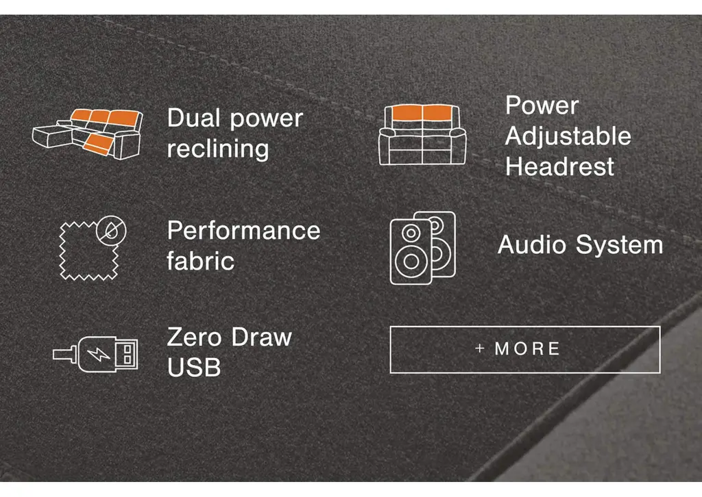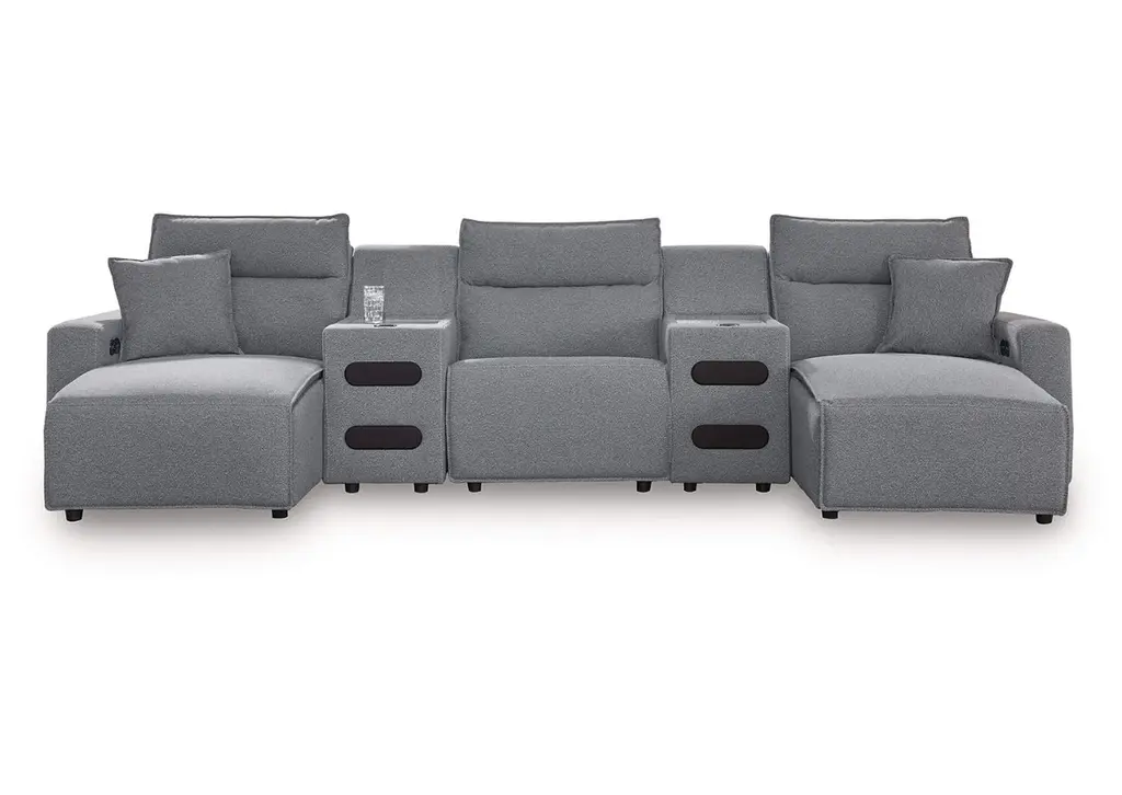 Looking cool and contemporary is great. But when it comes down to it, you’re all about low-maintenance lounging. With the performance fabric on the Modmax power reclining sectional with chaise, cleaning spills is a breeze. Its modular design caters to your ever-changing needs. And the audio console's built-in speakers with wireless connectivity turn your living room into an entertainment hub. It's proof that modern design and superb comfort go hand in hand. Weight 358.000 lbs. (161.1kgs.)