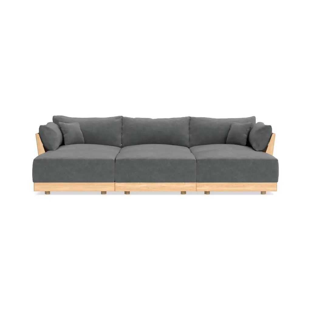 Features Custom Cloud-like Comfort: Oversized cushions, an extra deep seat, a tapered, cradled recline, and a comfort-centric webbing system—Bondi is designed for lavish comfort from the ground up. Choose between our two best selling comfort recipes to find the custom formula that’s right for you. Washable Covers: The entire Bondi Sofa can be undressed and washed with our patent pending design. All fabric covers feature concealed zippers for easy removal and cleaning. Extra slipcovers are available for purchase. Life-Proof Seating: Designed to handle everything from dirty paws to sharp claws, our fabric collection includes high performance options that are Machine Washable, Liquid Repellent, Stain Resistant, & Pet-Friendly. Each pillow is wrapped in a patent pending, water-resistant liner and each seat cushion features moisture-wicking air mesh for additional protection. Modular: Reconfigurable, patent pending modules, made to move and adapt with your ever-changing lifestyle. Designed to fit anywhere—great for small & large spaces alike. Sustainable Craftsmanship: Bondi’s kiln-dried solid ash wood frame is FSC-Certified. Our comfort formulas feature low impact eco-foam that upcycles disposable bottles. One sofa = roughly 400 recycled plastic bottles. All foam is CertiPUR-US®, free of ozone depletors.