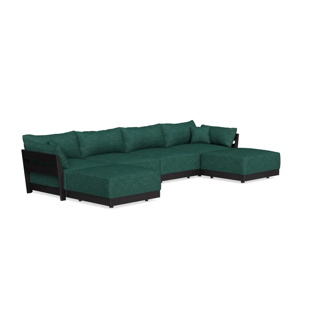 Modular Bondi Black 4-Seater U-Sectional In Forest Green | Memory Foam Blend