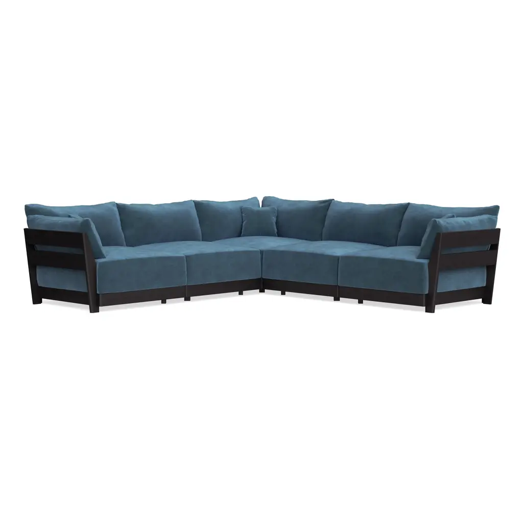 Modular Bondi Black 5-Seater Corner Sectional In Oxford Blue | Classic Blend