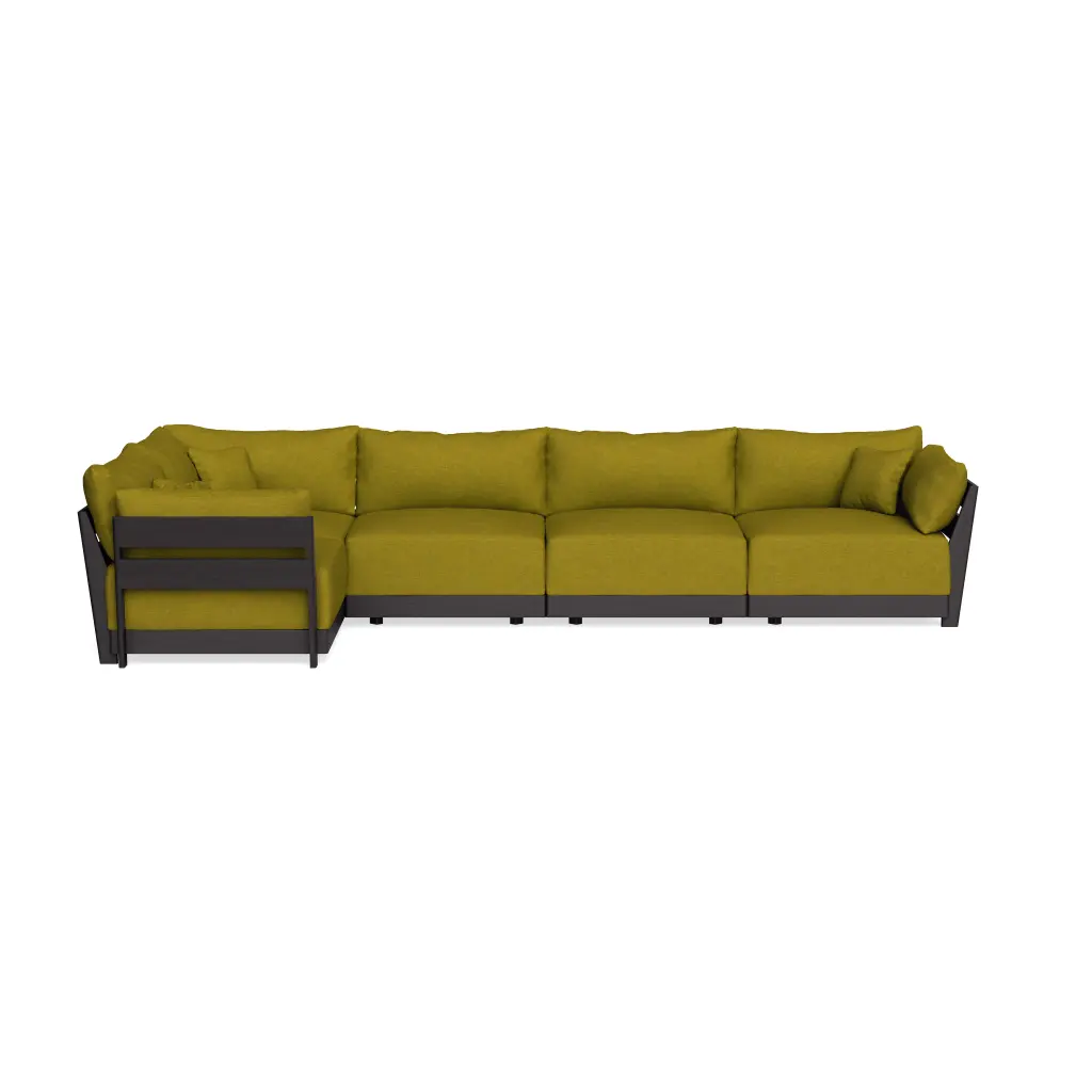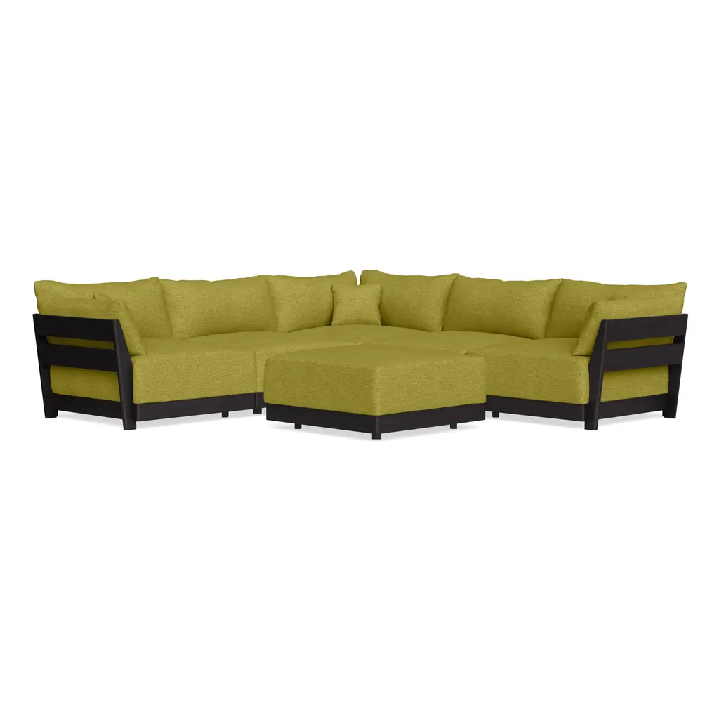 Modular Bondi Black 5-Seater Corner Sectional + Ottoman In Avocado | Classic Blend