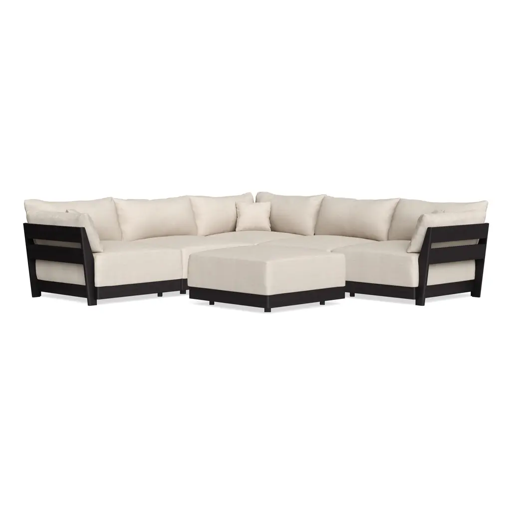 Modular Bondi Black 5-Seater Corner Sectional + Ottoman In Seashell | Memory Foam Blend