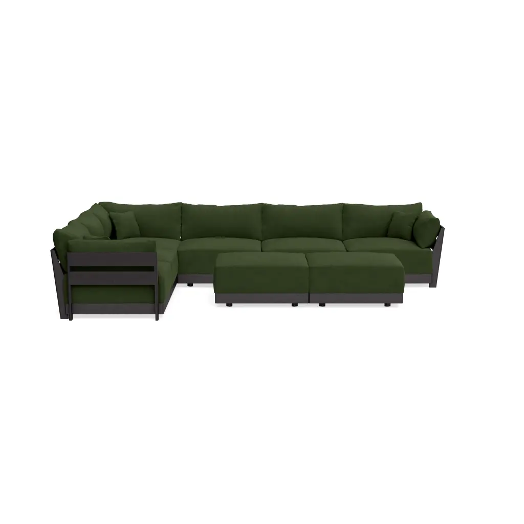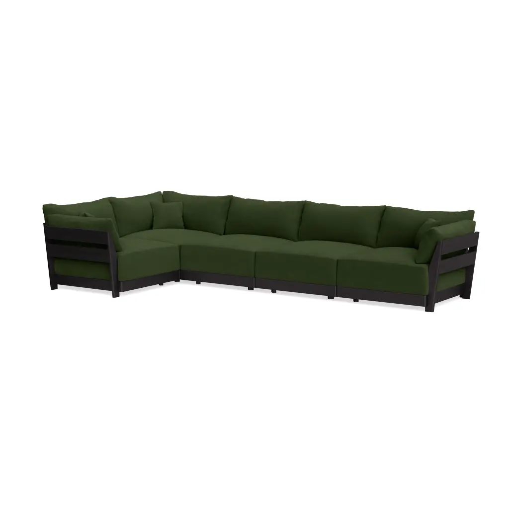 Modular Bondi Black 5-Seater L-Sectional In Tuscan Green | Memory Foam Blend