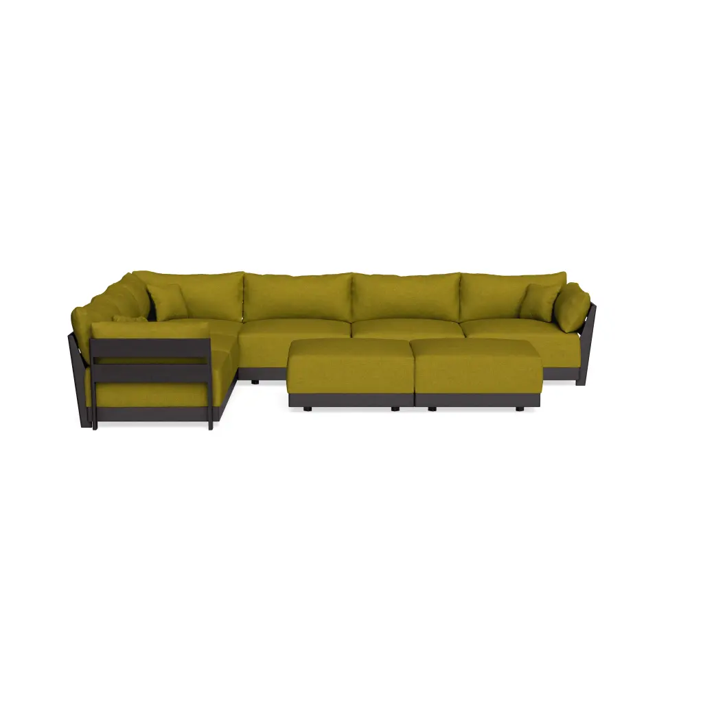 Modular Bondi Black 6-Seater Corner Sectional + Bench Ottoman In Avocado | Memory Foam Blend