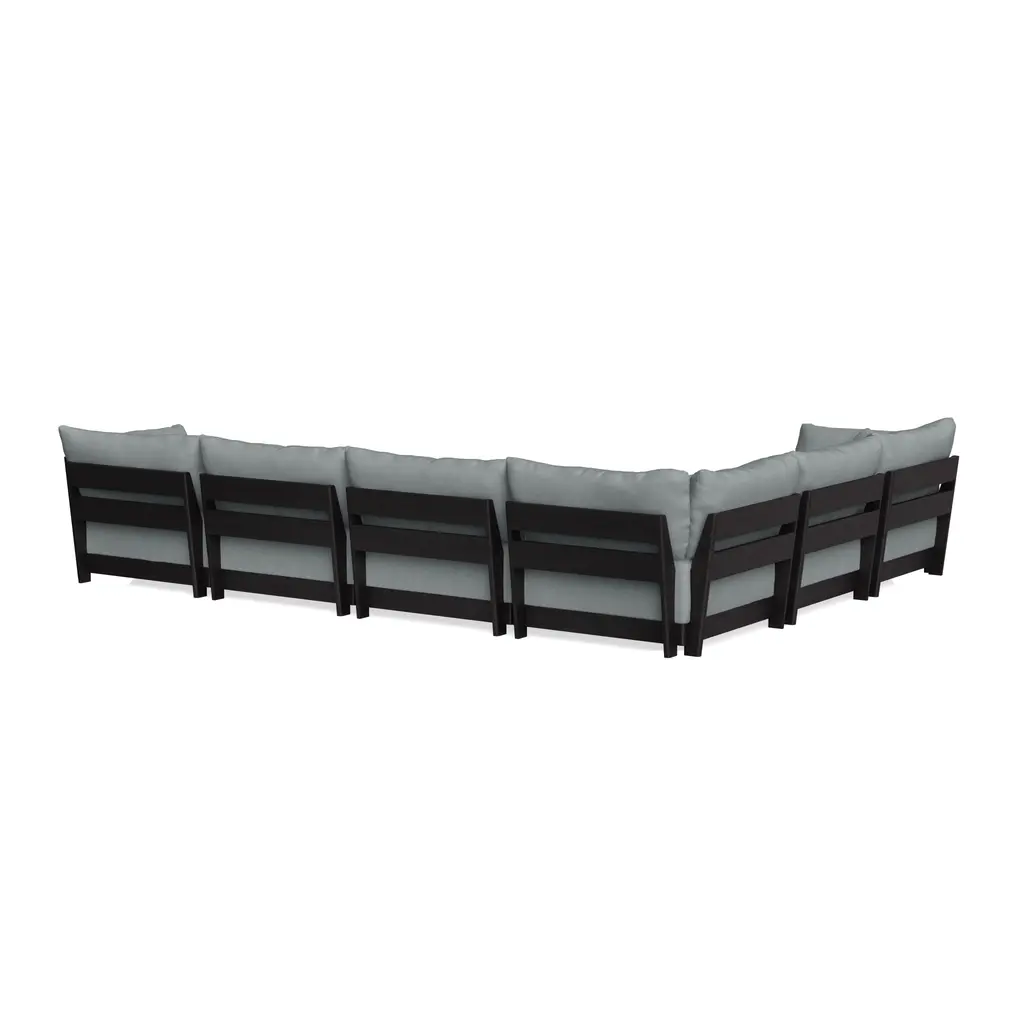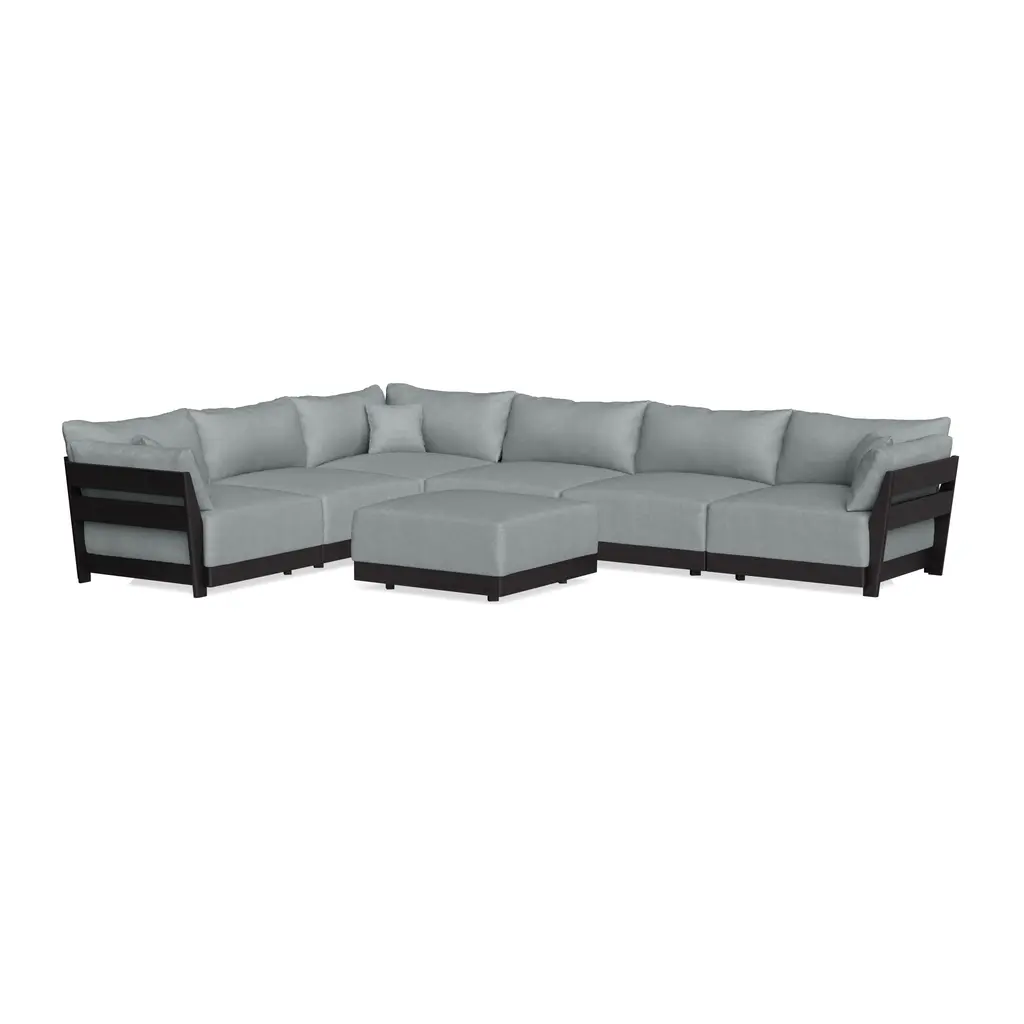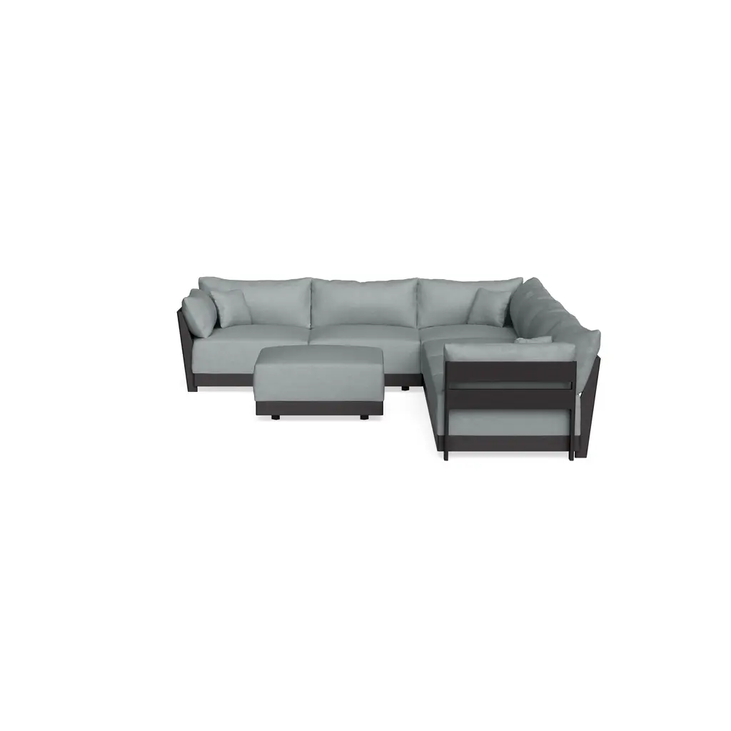 Modular Bondi Black 6-Seater Corner Sectional + Ottoman In Light Steel | Classic Blend