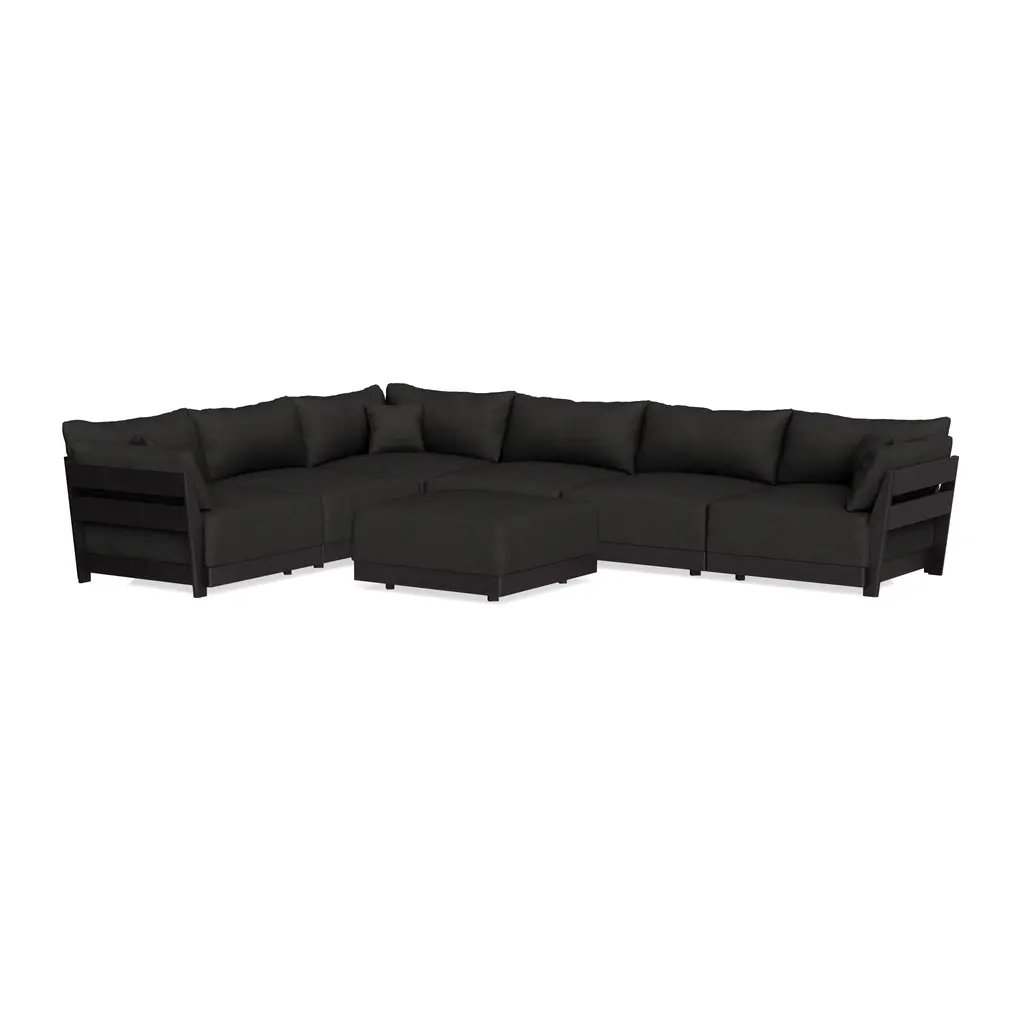 Modular Bondi Black 6-Seater Corner Sectional + Ottoman In Peppercorn | Classic Blend