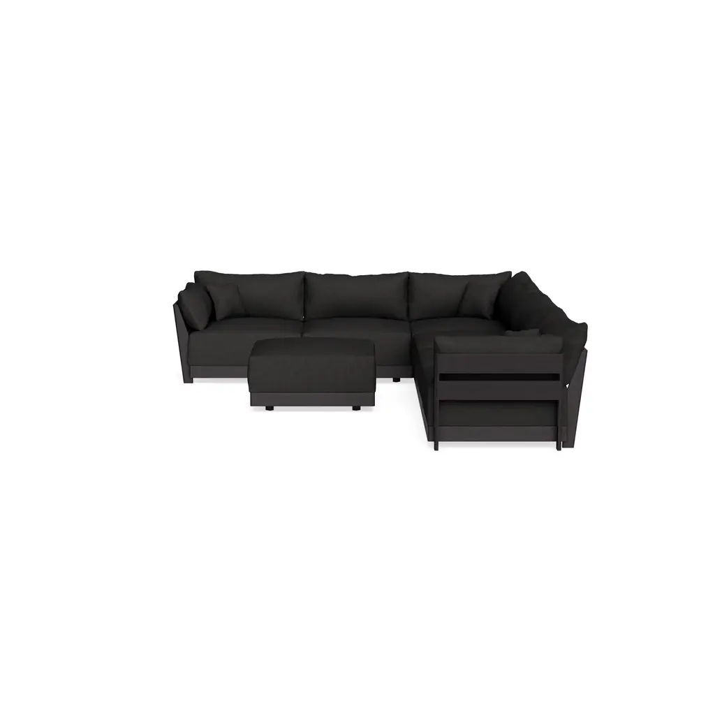 Modular Bondi Black 6-Seater Corner Sectional + Ottoman In Peppercorn | Memory Foam Blend