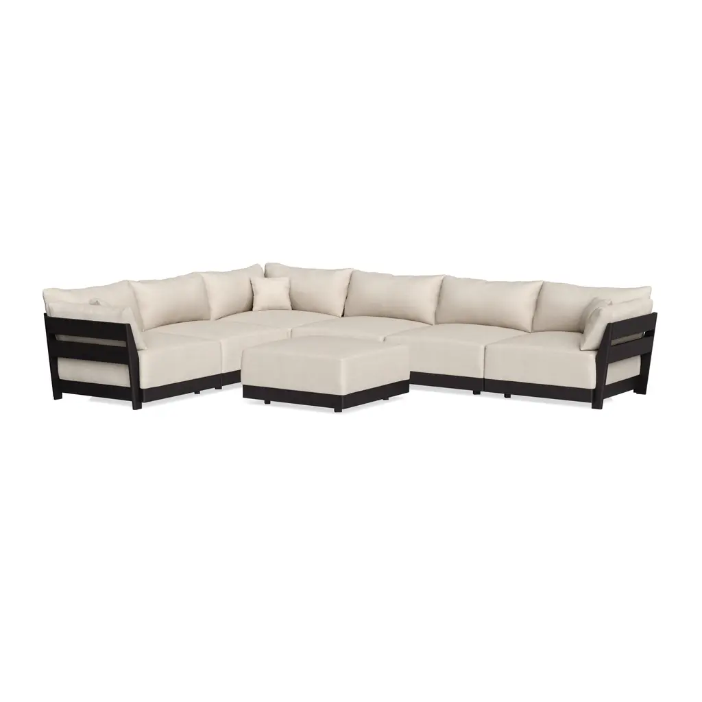 Modular Bondi Black 6-Seater Corner Sectional + Ottoman In Seashell | Memory Foam Blend