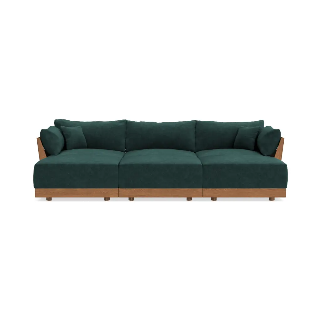 Features Custom Cloud-like Comfort: Oversized cushions, an extra deep seat, a tapered, cradled recline, and a comfort-centric webbing system—Bondi is designed for lavish comfort from the ground up. Choose between our two best selling comfort recipes to find the custom formula that’s right for you. Washable Covers: The entire Bondi Sofa can be undressed and washed with our patent pending design. All fabric covers feature concealed zippers for easy removal and cleaning. Extra slipcovers are available for purchase. Life-Proof Seating: Designed to handle everything from dirty paws to sharp claws, our fabric collection includes high performance options that are Machine Washable, Liquid Repellent, Stain Resistant, & Pet-Friendly. Each pillow is wrapped in a patent pending, water-resistant liner and each seat cushion features moisture-wicking air mesh for additional protection. Modular: Reconfigurable, patent pending modules, made to move and adapt with your ever-changing lifestyle. Designed to fit anywhere—great for small & large spaces alike. Sustainable Craftsmanship: Bondi’s kiln-dried solid ash wood frame is FSC-Certified. Our comfort formulas feature low impact eco-foam that upcycles disposable bottles. One sofa = roughly 400 recycled plastic bottles. All foam is CertiPUR-US®, free of ozone depletors.