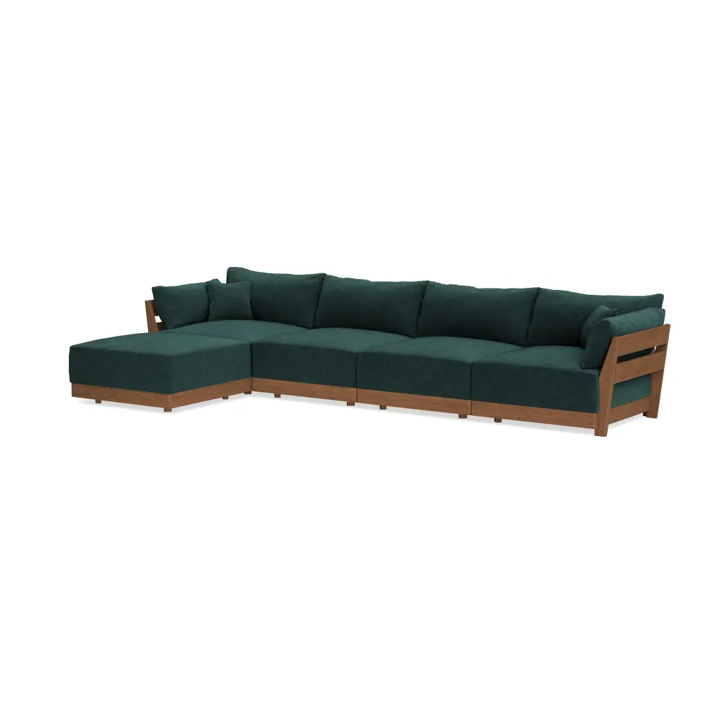 Modular Bondi Espresso 4-Seater Sectional In Harbor Blue | Memory Foam Blend