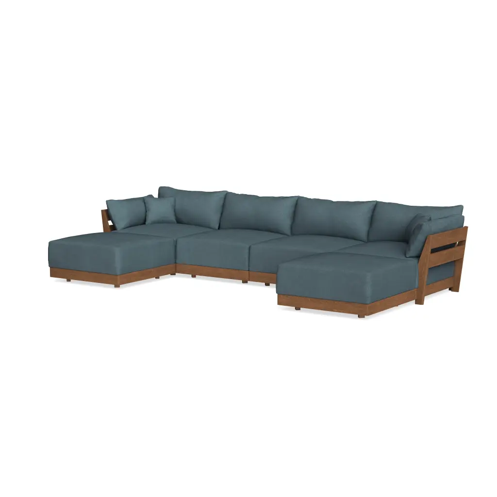 Modular Bondi Espresso 4-Seater U-Sectional In Slate Blue | Memory Foam Blend