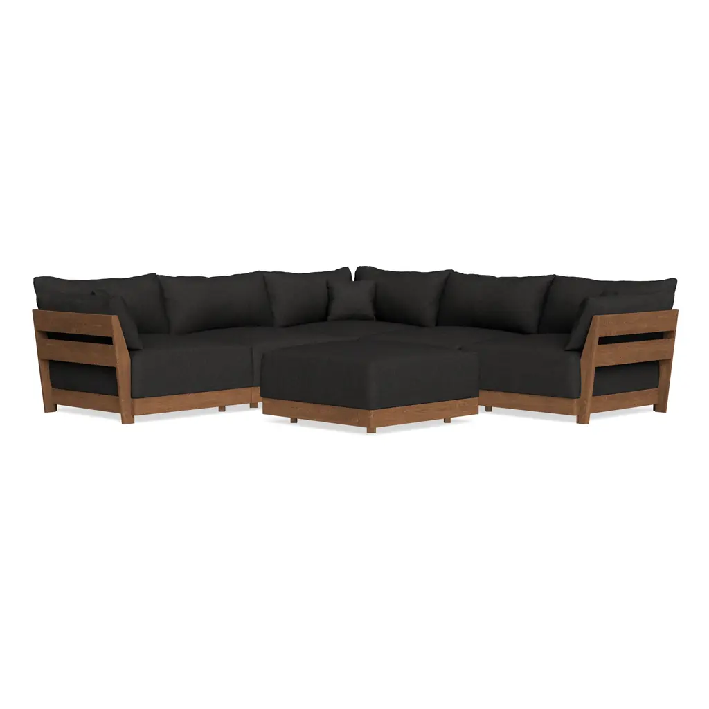 Modular Bondi Espresso 5-Seater Corner Sectional + Ottoman In Peppercorn | Classic Blend