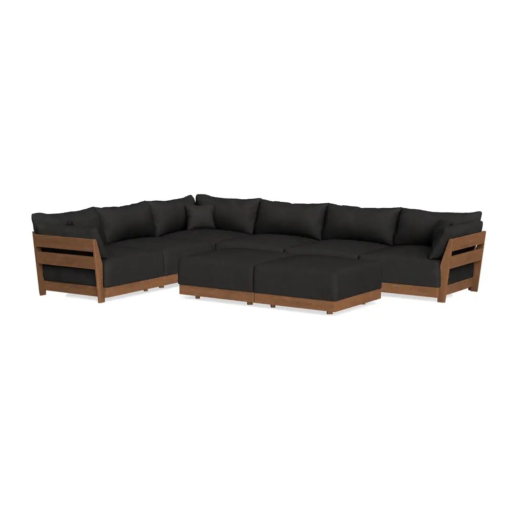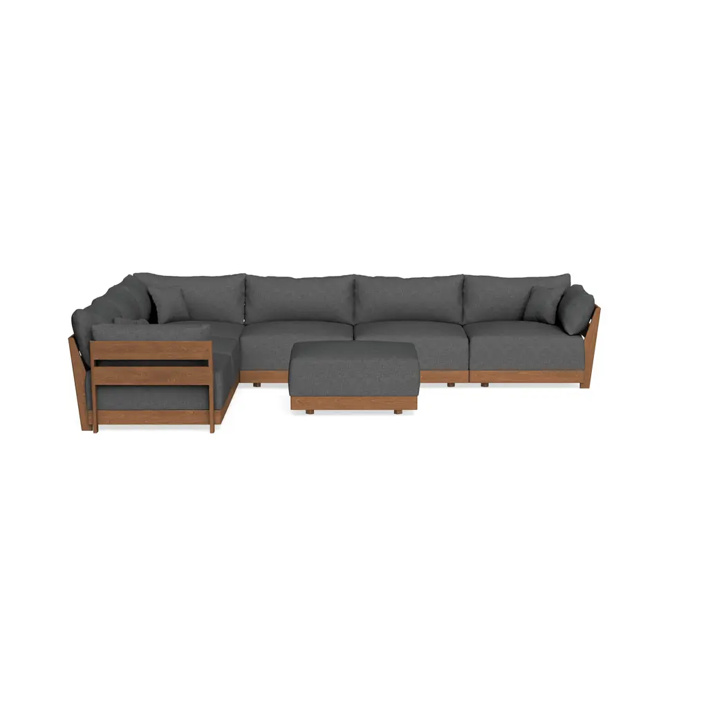 Modular Bondi Espresso 6-Seater Corner Sectional + Bench Ottoman In Peppercorn | Classic Blend