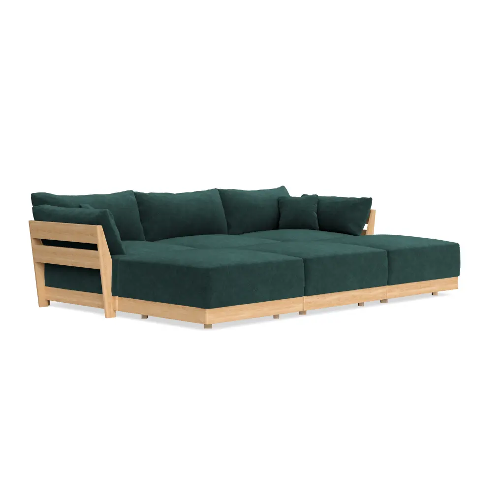 Modular Bondi Latte 3-Seater Daybed Sofa Sectional In Harbor Blue | Memory Foam Blend