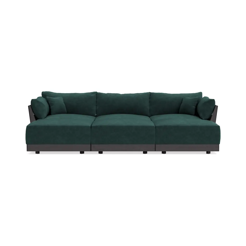 Features Custom Cloud-like Comfort: Oversized cushions, an extra deep seat, a tapered, cradled recline, and a comfort-centric webbing system—Bondi is designed for lavish comfort from the ground up. Choose between our two best selling comfort recipes to find the custom formula that’s right for you. Washable Covers: The entire Bondi Sofa can be undressed and washed with our patent pending design. All fabric covers feature concealed zippers for easy removal and cleaning. Extra slipcovers are available for purchase. Life-Proof Seating: Designed to handle everything from dirty paws to sharp claws, our fabric collection includes high performance options that are Machine Washable, Liquid Repellent, Stain Resistant, & Pet-Friendly. Each pillow is wrapped in a patent pending, water-resistant liner and each seat cushion features moisture-wicking air mesh for additional protection. Modular: Reconfigurable, patent pending modules, made to move and adapt with your ever-changing lifestyle. Designed to fit anywhere—great for small & large spaces alike. Sustainable Craftsmanship: Bondi’s kiln-dried solid ash wood frame is FSC-Certified. Our comfort formulas feature low impact eco-foam that upcycles disposable bottles. One sofa = roughly 400 recycled plastic bottles. All foam is CertiPUR-US®, free of ozone depletors.