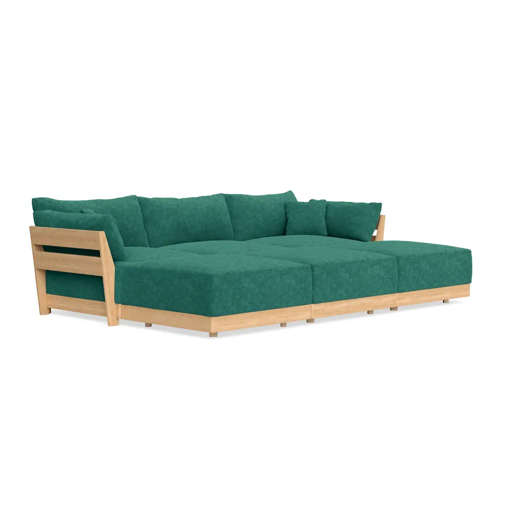 Modular Bondi Latte 3-Seater Daybed Sofa Sectional In Jade Green | Classic Blend