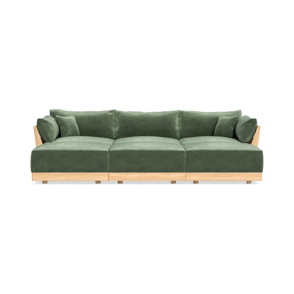 Modular Bondi Latte 3-Seater Daybed Sofa Sectional In Tuscan Green | Memory Foam Blend