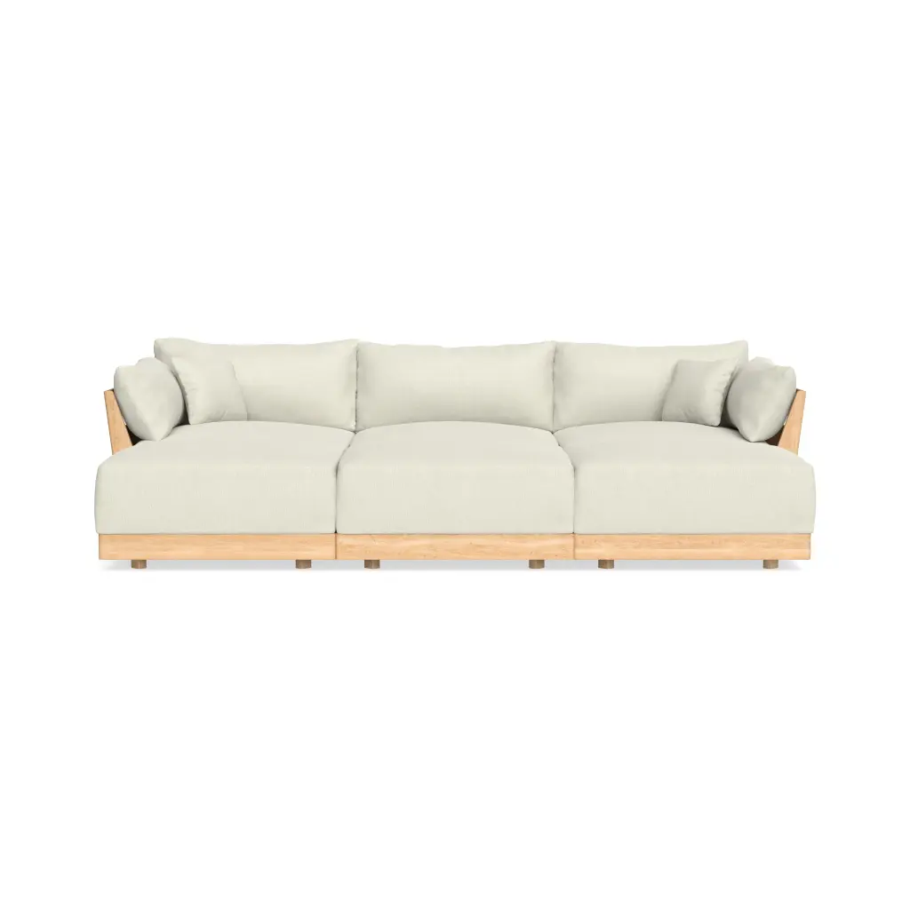 Features Custom Cloud-like Comfort: Oversized cushions, an extra deep seat, a tapered, cradled recline, and a comfort-centric webbing system—Bondi is designed for lavish comfort from the ground up. Choose between our two best selling comfort recipes to find the custom formula that’s right for you. Washable Covers: The entire Bondi Sofa can be undressed and washed with our patent pending design. All fabric covers feature concealed zippers for easy removal and cleaning. Extra slipcovers are available for purchase. Life-Proof Seating: Designed to handle everything from dirty paws to sharp claws, our fabric collection includes high performance options that are Machine Washable, Liquid Repellent, Stain Resistant, & Pet-Friendly. Each pillow is wrapped in a patent pending, water-resistant liner and each seat cushion features moisture-wicking air mesh for additional protection. Modular: Reconfigurable, patent pending modules, made to move and adapt with your ever-changing lifestyle. Designed to fit anywhere—great for small & large spaces alike. Sustainable Craftsmanship: Bondi’s kiln-dried solid ash wood frame is FSC-Certified. Our comfort formulas feature low impact eco-foam that upcycles disposable bottles. One sofa = roughly 400 recycled plastic bottles. All foam is CertiPUR-US®, free of ozone depletors.