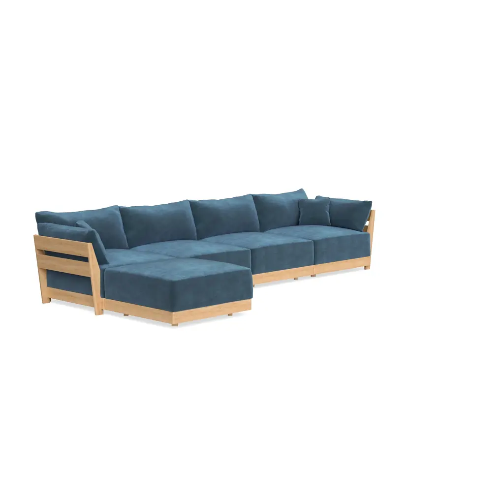 Modular Bondi Latte 4-Seater Sectional In Oxford Blue | Memory Foam Blend