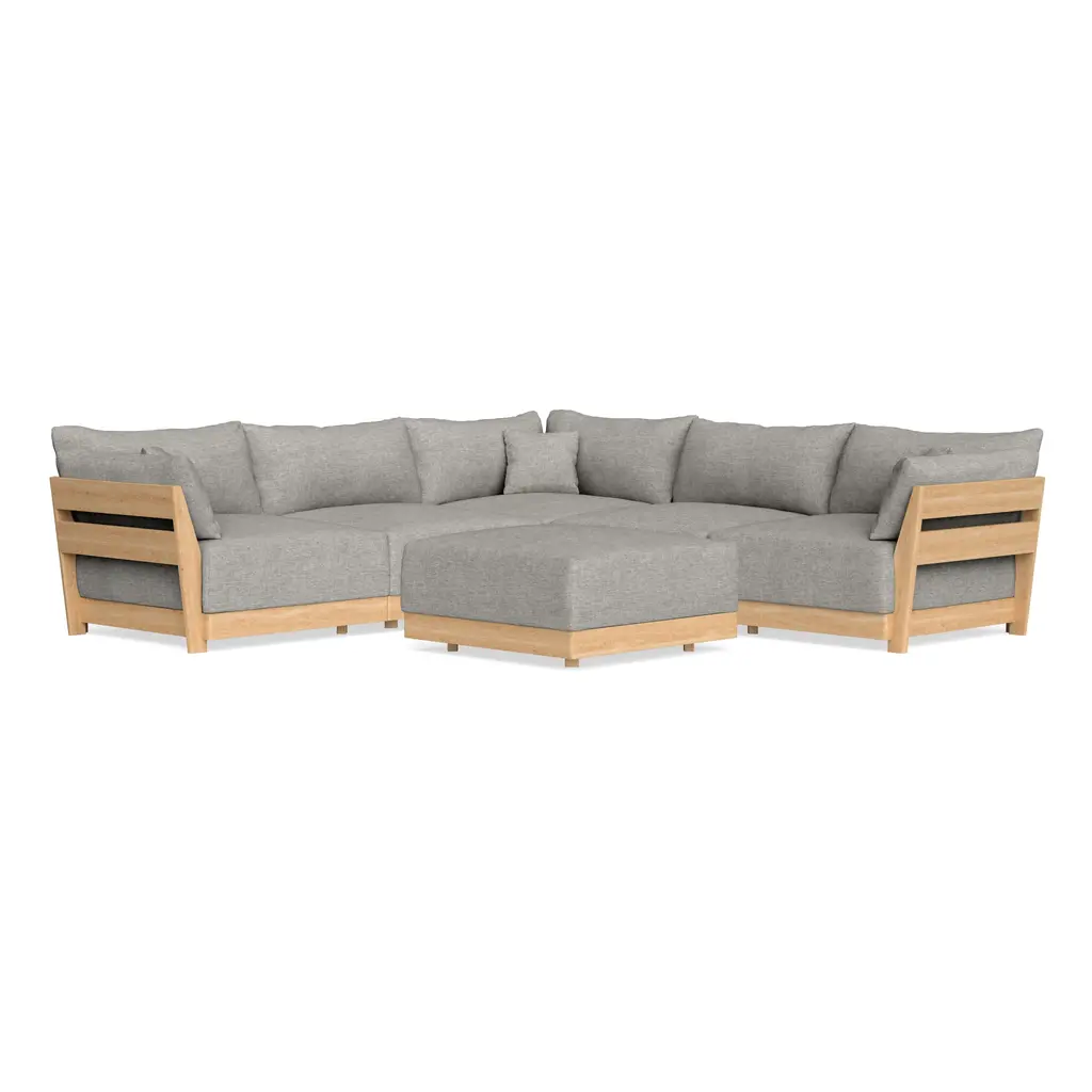 Modular Bondi Latte 5-Seater Corner Sectional + Ottoman In Fog | Memory Foam Blend