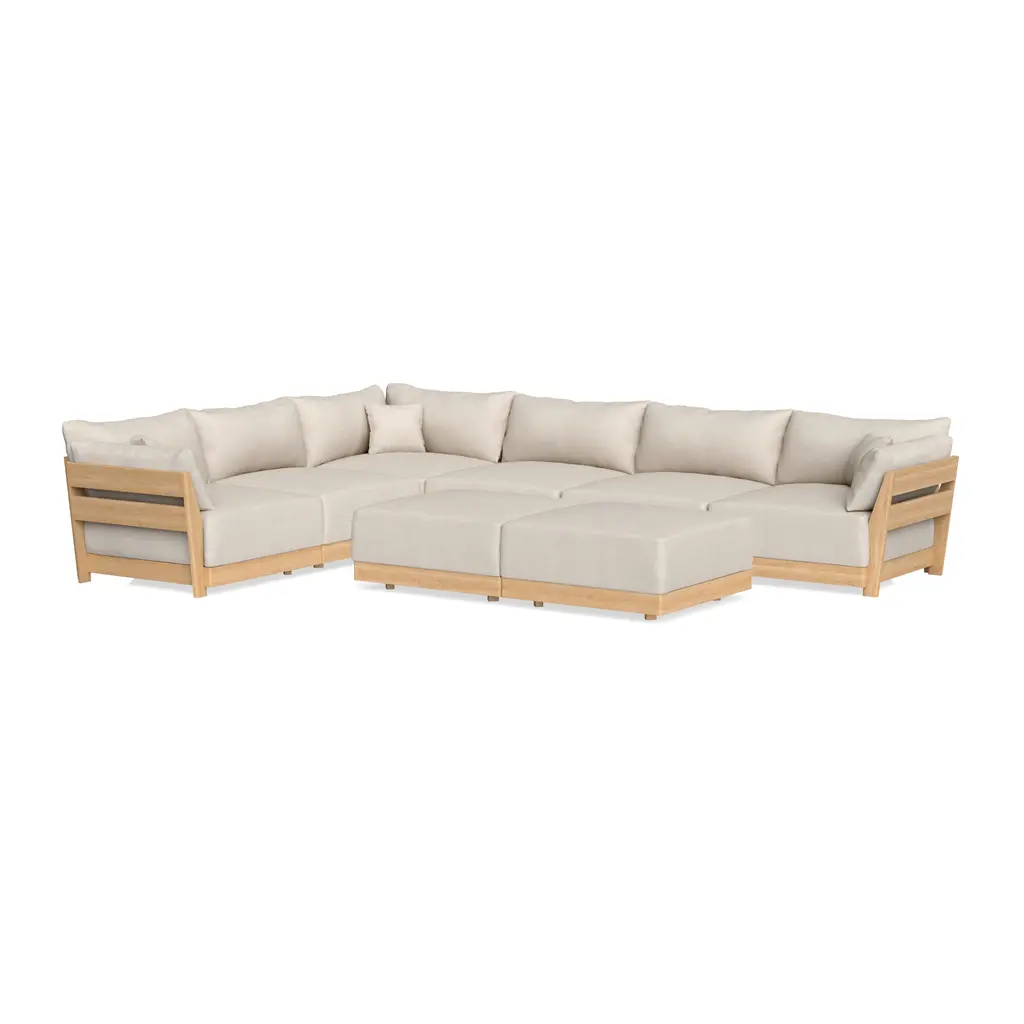 Modular Bondi Latte 6-Seater Corner Sectional + Bench Ottoman In Seashell | Memory Foam Blend
