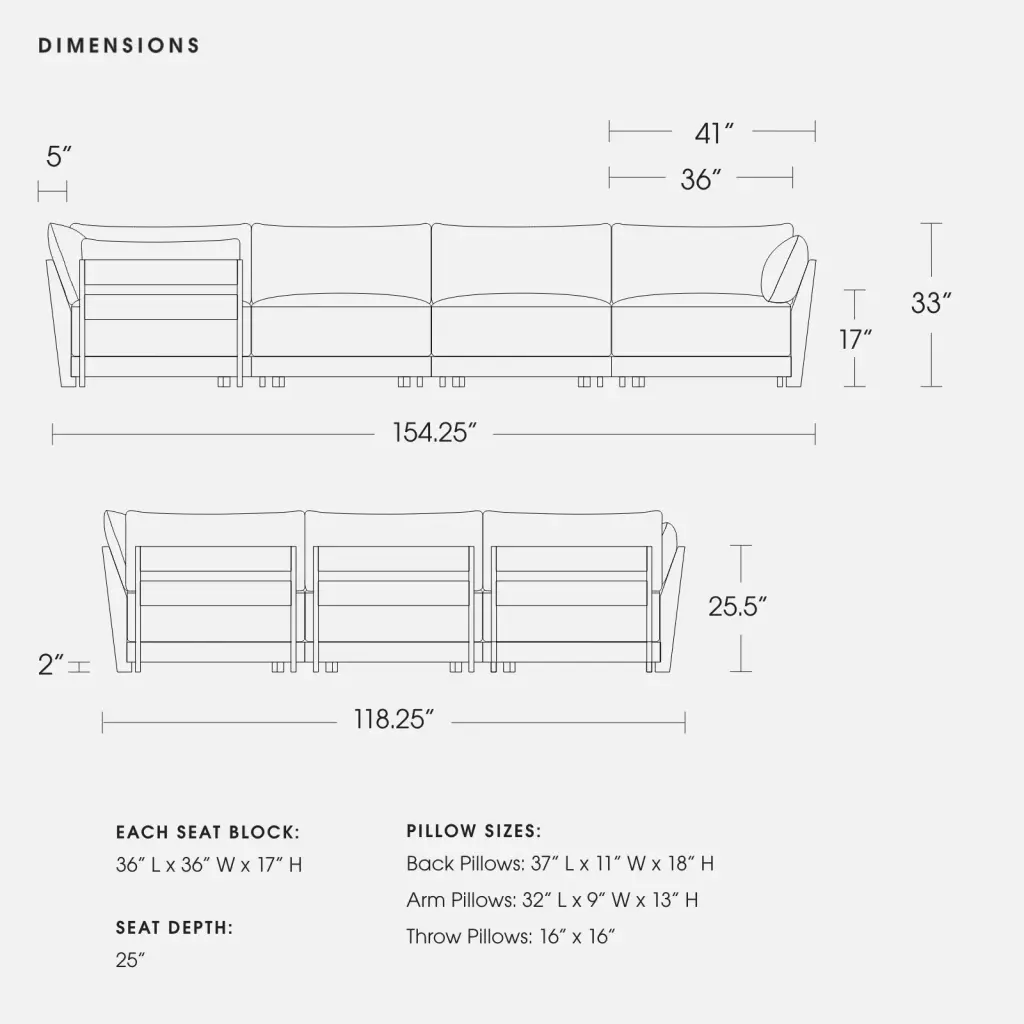Features Custom Cloud-like Comfort: Oversized cushions, an extra deep seat, a tapered, cradled recline, and a comfort-centric webbing system—Bondi is designed for lavish comfort from the ground up. Choose between our two best selling comfort recipes to find the custom formula that’s right for you. Washable Covers: The entire Bondi Sofa can be undressed and washed with our patent pending design. All fabric covers feature concealed zippers for easy removal and cleaning. Extra slipcovers are available for purchase. Life-Proof Seating: Designed to handle everything from dirty paws to sharp claws, our fabric collection includes high performance options that are Machine Washable, Liquid Repellent, Stain Resistant, & Pet-Friendly. Each pillow is wrapped in a patent pending, water-resistant liner and each seat cushion features moisture-wicking air mesh for additional protection. Modular: Reconfigurable, patent pending modules, made to move and adapt with your ever-changing lifestyle. Designed to fit anywhere—great for small & large spaces alike. Sustainable Craftsmanship: Bondi’s kiln-dried solid ash wood frame is FSC-Certified. Our comfort formulas feature low impact eco-foam that upcycles disposable bottles. One sofa = roughly 400 recycled plastic bottles. All foam is CertiPUR-US®, free of ozone depletors.
