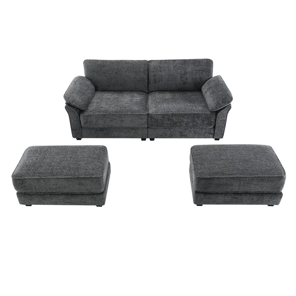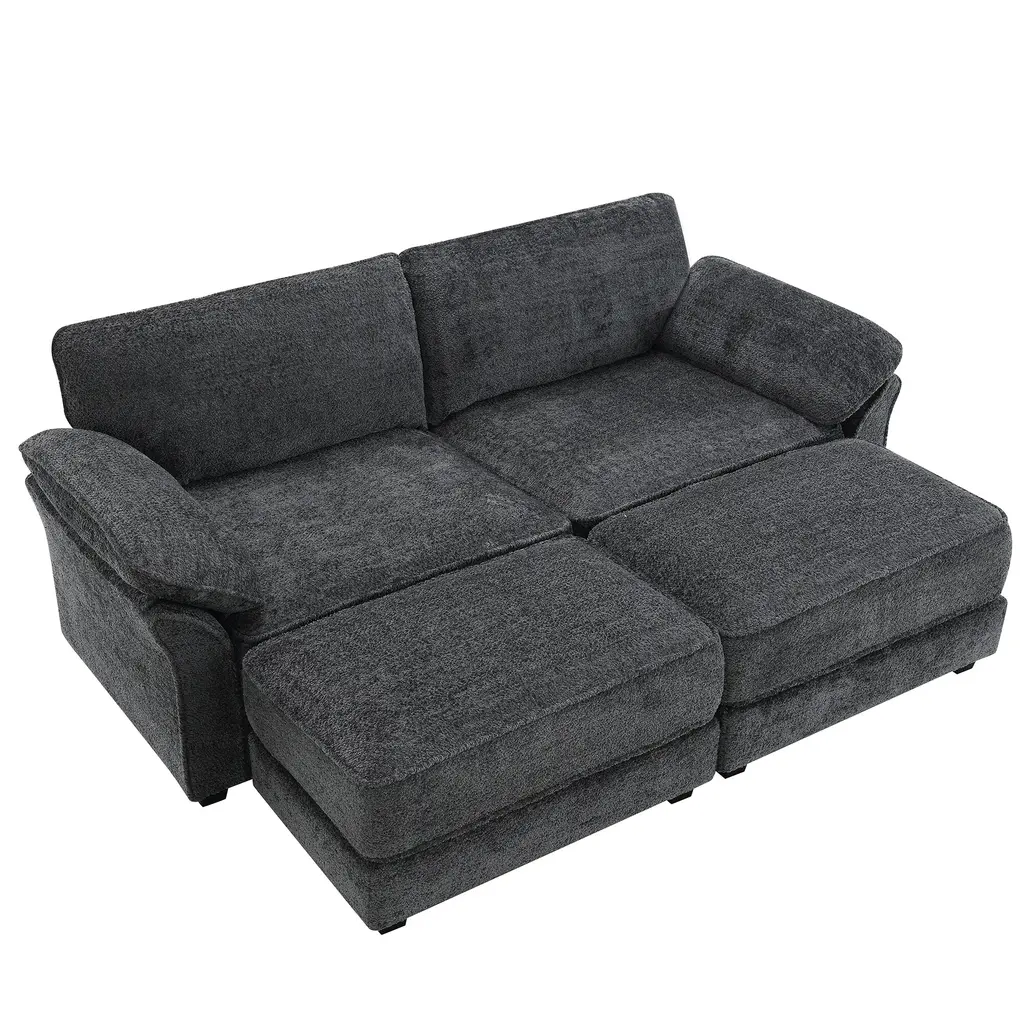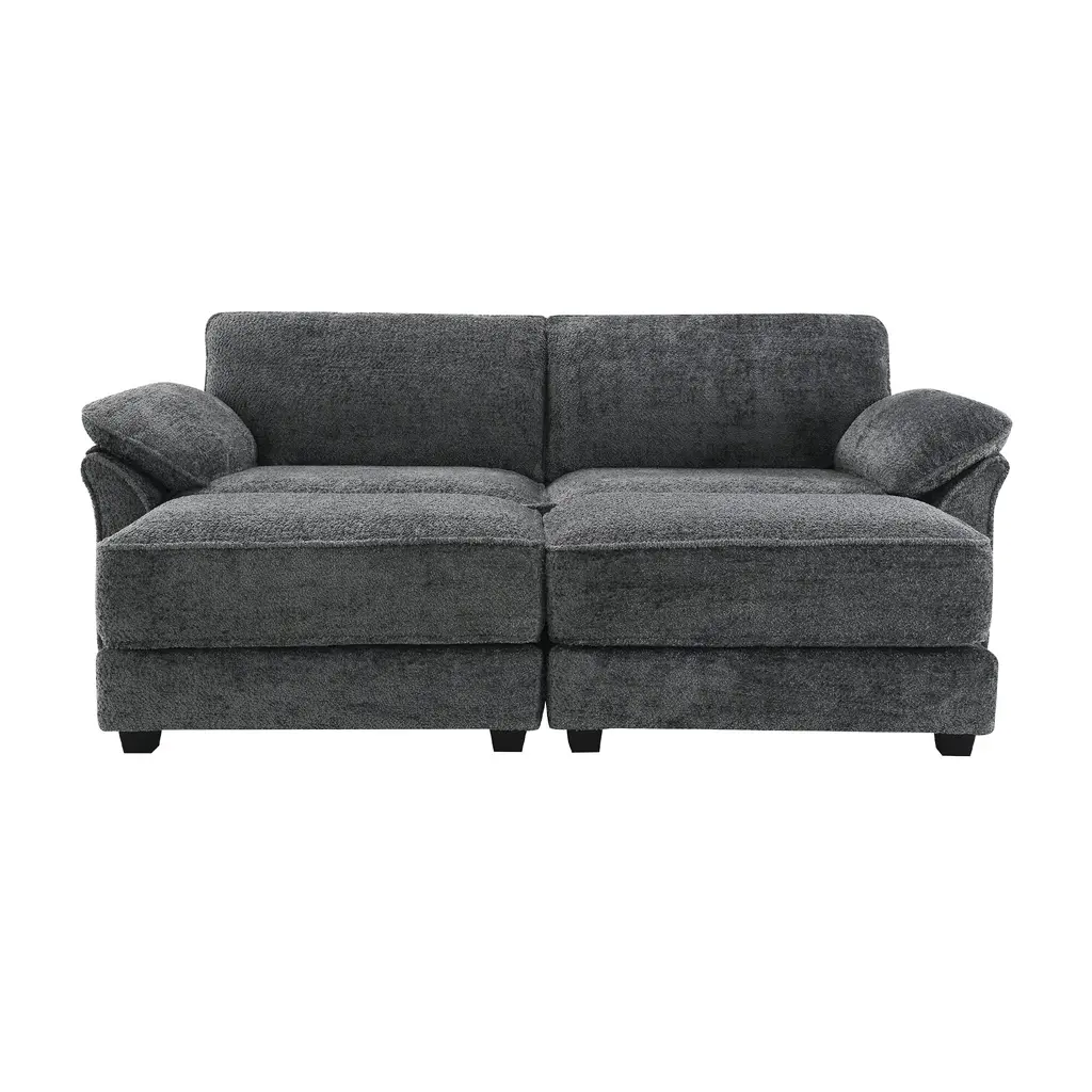 Modular Convertible Sectional Loveseat, Deep Seat Loveseat With Footstool, Suitable For Living Room, Office, Apartment - Gray