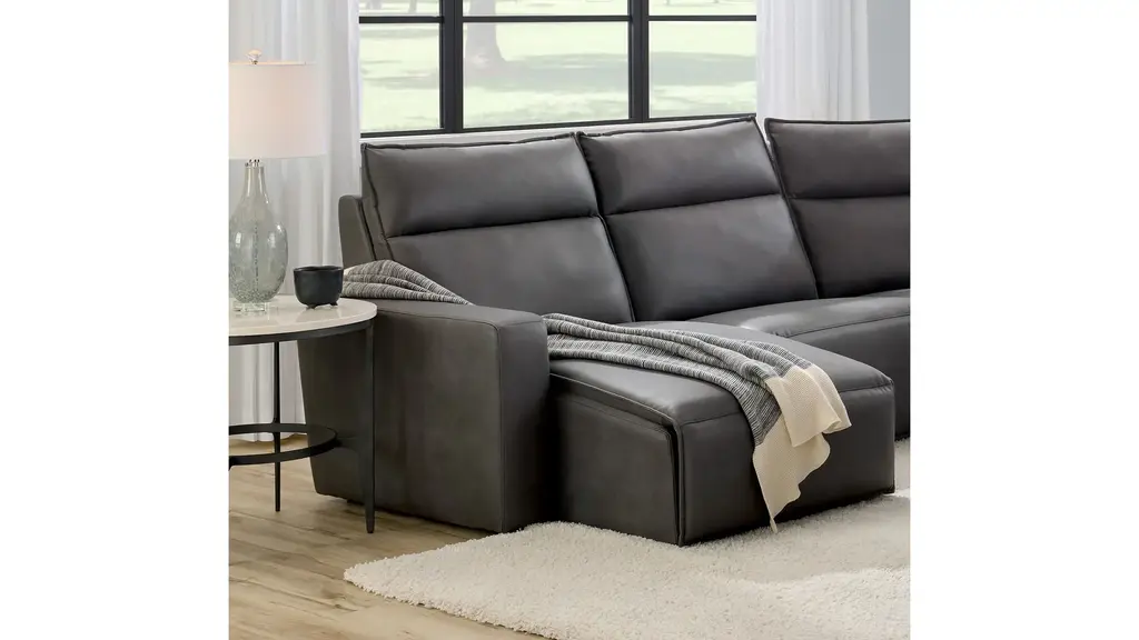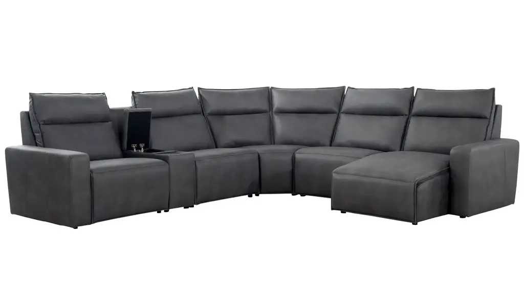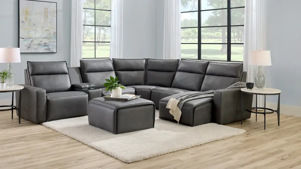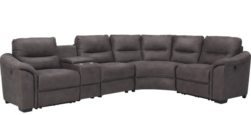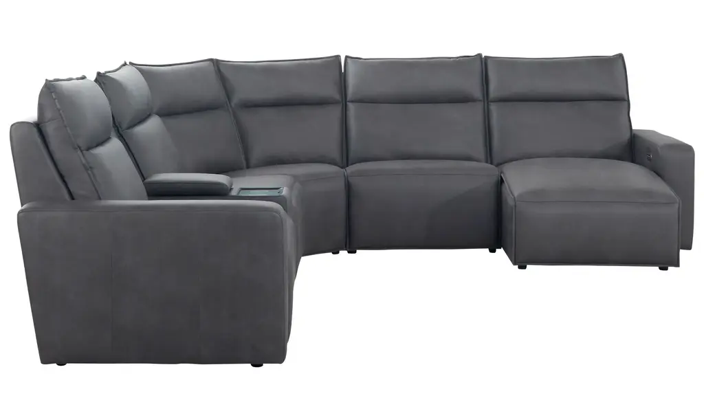 Ready to kick back, relax, and be fully immersed in comfort? The ModularTwo 6-pc. power sectional with power headrest is the seating solution you've been looking for. A celebration of contemporary style, the ModularTwo is upholstered in soft and stain-resistant microfiber faux leather. Track arms and a tailored pub back with flange-edged cushions bring a casual yet elevated aesthetic to your home. Designed with comfort and flexibility at the forefront, ModularTwo components are upholstered on all sides so you can rearrange and add to your personalized configuration as you please. You'll also love the tech features for your modern lifestyle: Power controls at your fingertips allow effortless reclining for the perfect position, and built-in Bluetooth speakers in the console let you stream music and broadcasts for a truly immersive experience. Choose a preconfigured design or combine individual components to create modular seating that's perfect for your space and style.