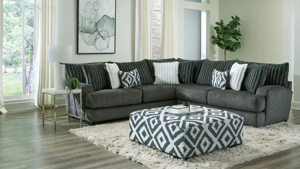 The Mondo 2-pc. Sofa sectional features the ultimate in style, comfort, and value. Covered in brand new plush, ultra-soft fabrics, you'll be amazed at the touch and feel of these new luxurous materials. Thick seat cushions and beautifully coordinating accent pillows creates a georgous space in your home that is both stylish and comfortable. You'll love having guests over and enjoy spending family time on the Mondo collection.