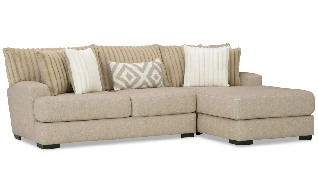 The Mondo 2-pc. Sofa Chaise features the ultimate in style, comfort, and value. Covered in brand new plush, ultra-soft fabrics, you'll be amazed at the touch and feel of these new luxurous materials. Thick seat cushions and beautifully coordinating accent pillows creates a georgous space in your home that is both stylish and comfortable. You'll love having guests over and enjoy spending family time on the Mondo collection.