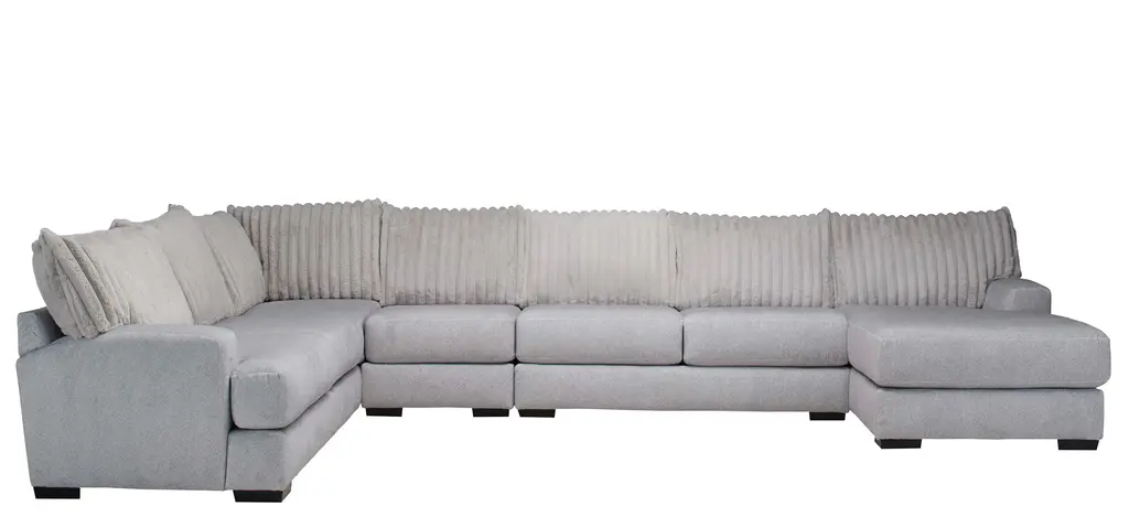 Lean into bold texture and blissful comfort with the faux fur chic of the Mondo 4-pc. sectional. Designed for visual impact and enduring seating comfort, the silvery gray Mondo transforms your home into a haven of plushy elegance. Combine sectional pieces to create endless configurations to suit your home and lifestyle.