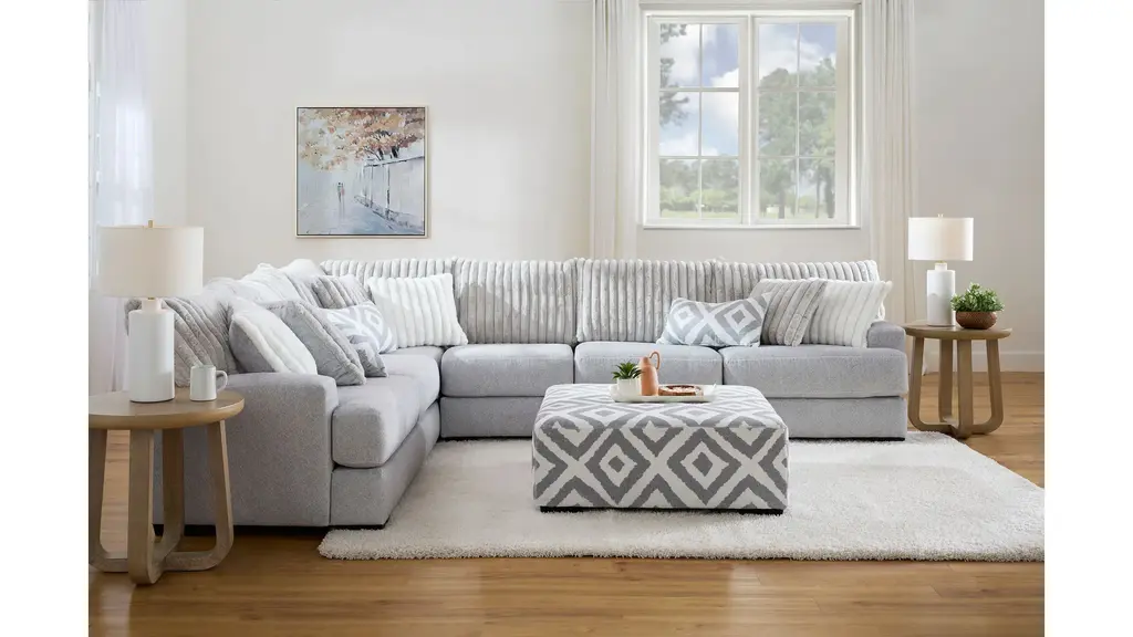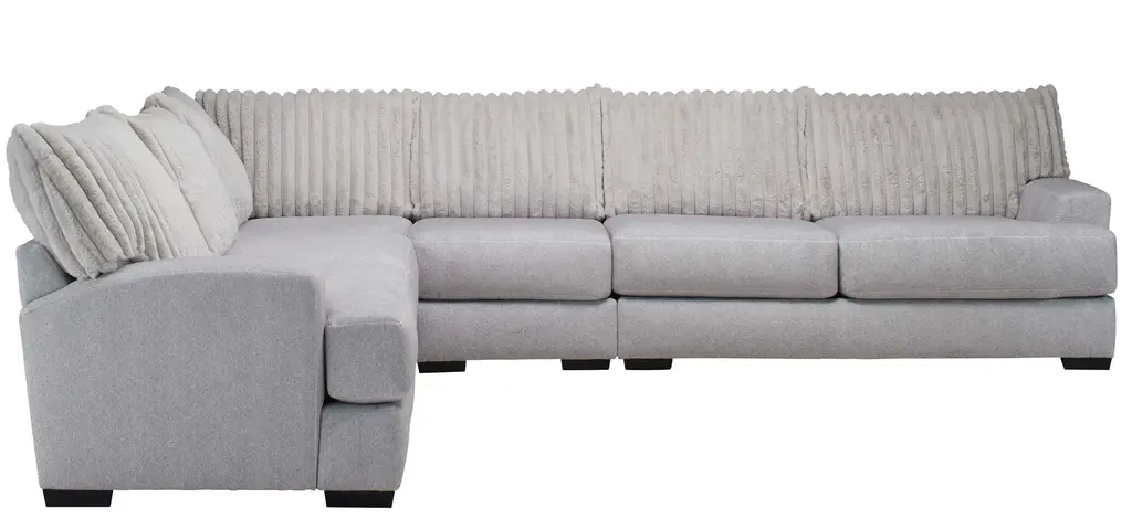 Lean into bold texture and blissful comfort with the faux fur chic of the Mondo 4-pc. sectional. Designed for visual impact and enduring seating comfort, the silvery gray Mondo transforms your home into a haven of plushy elegance. Combine sectional pieces to create endless configurations to suit your home and lifestyle.