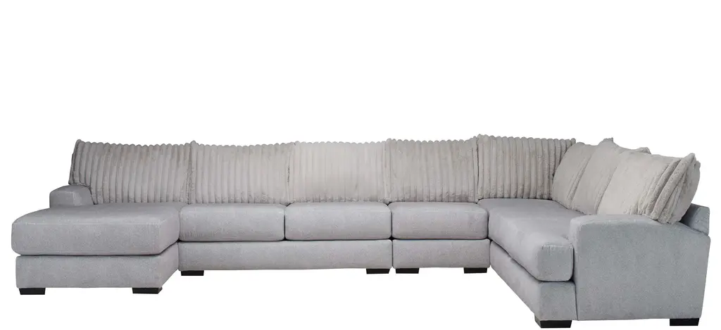 Lean into bold texture and blissful comfort with the faux fur chic of the Mondo 4-pc. sectional. Designed for visual impact and enduring seating comfort, the silvery gray Mondo transforms your home into a haven of plushy elegance. Combine sectional pieces to create endless configurations to suit your home and lifestyle.