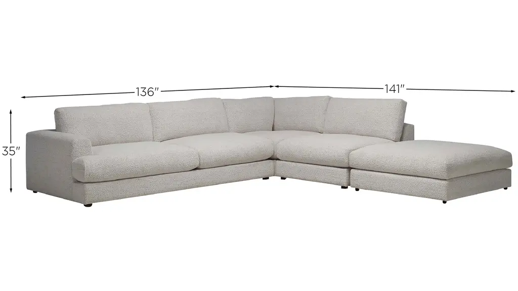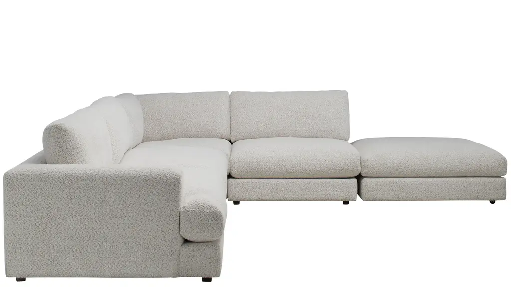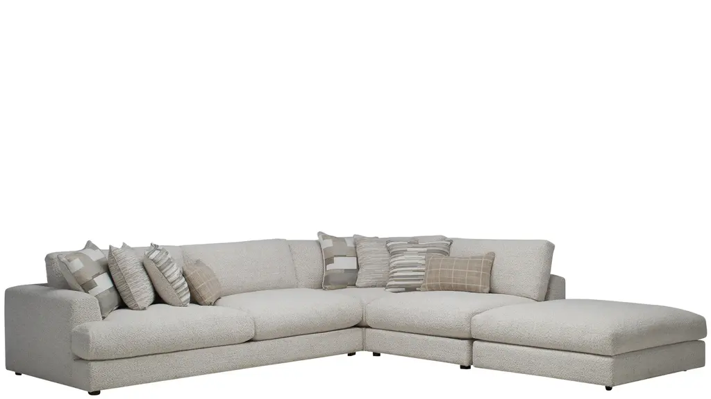 With the generous proportions and plush seating of the Montecito sectional from Drew & Jonathan, you can invite a crowd to join you for movie nights, parties, lounging and more, and rest assured that everyone will find their own perfect perch. The 5-layer cushioning features a feather down blend for a superior seating experience. Soft ivory chenille and wide track arms make this a natural choice for a casual comfort oasis.