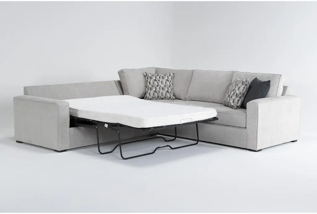 Introducing the Monterey 109" Beach Beige Grey Fabric 3 Piece L-Shaped Sectional with Left Arm Facing Full Memory Foam Sleeper. This contemporary sectional is designed to provide comfort and style to your living room. The symmetrical design and track arms offer a modern touch, while the full memory foam sleeper ensures a restful night's sleep.
