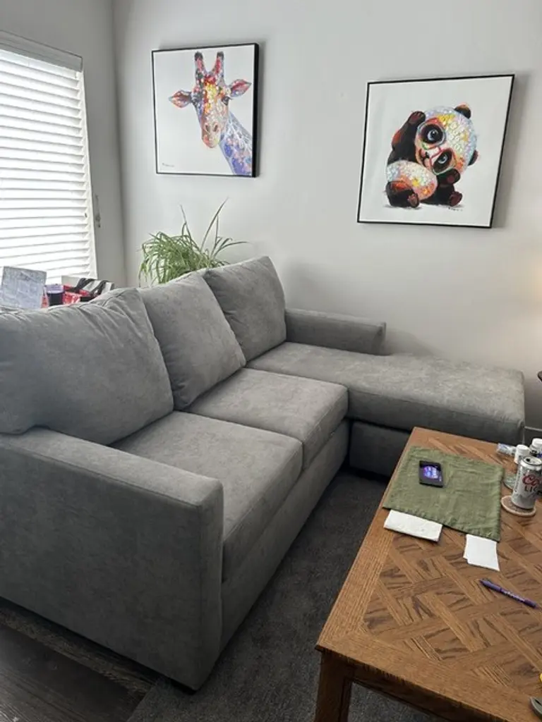 Discover the ultimate in comfort and style with the Monterey Beach Beige Grey Fabric 107" 2 Piece Modular Sectional with Right Arm Facing Chaise. This contemporary sectional is perfect for any living room, offering ample seating and a cozy design. The track arms and oversized configuration provide a modern touch that will complement your home decor beautifully.