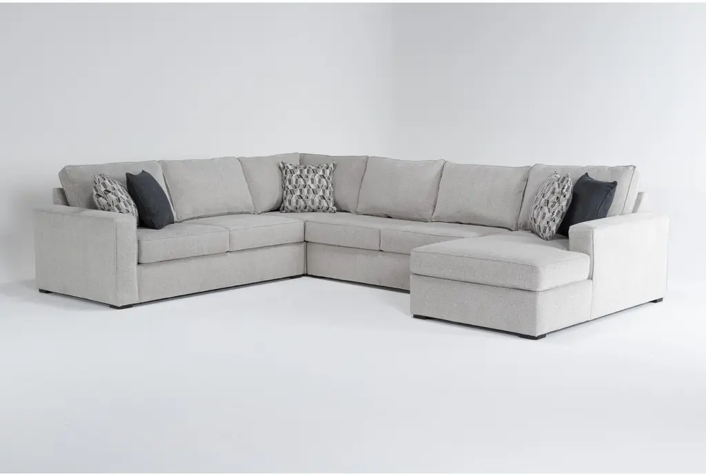 Monterey Beach Beige Grey Fabric 140" 4 Piece U-Shaped Sectional With Right Arm Facing Chaise | Track Arms | Modular