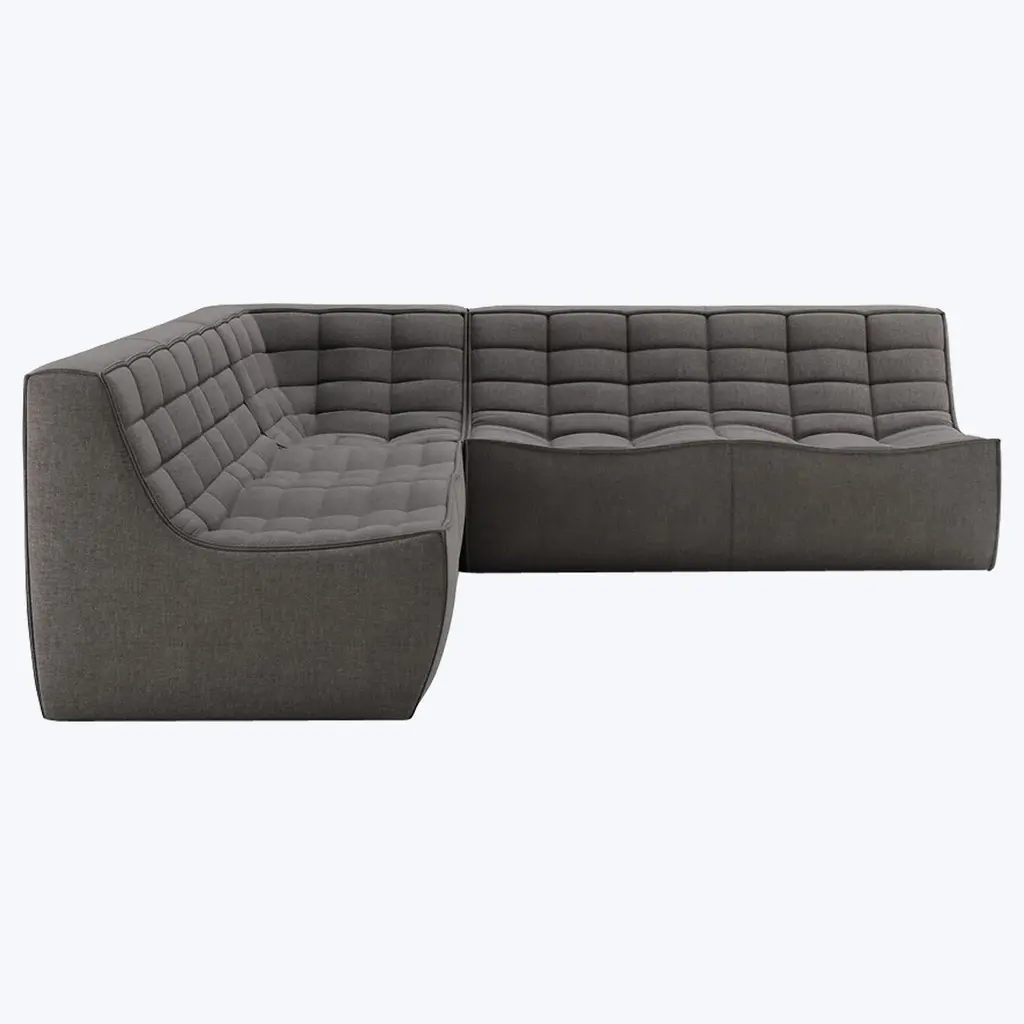 Lean into laid-back luxury with the N701 Modular Square-Corner Sectional by Ethnicraft. Designed by Jacques Deneef, this inviting sectional epitomizes contemporary cool with its armless design and curved silhouette. An enduring addition to design-driven spaces. Available in left and right-facing configurations. Choose from a variety of seating options and Beige, Blue, Dark Grey, Ecru Eco, Graphite Eco, and Moss Eco hues.