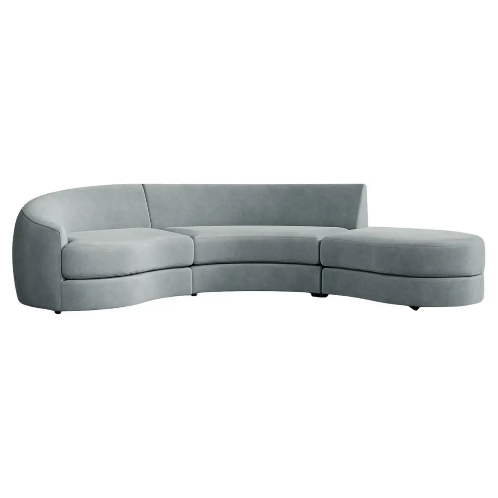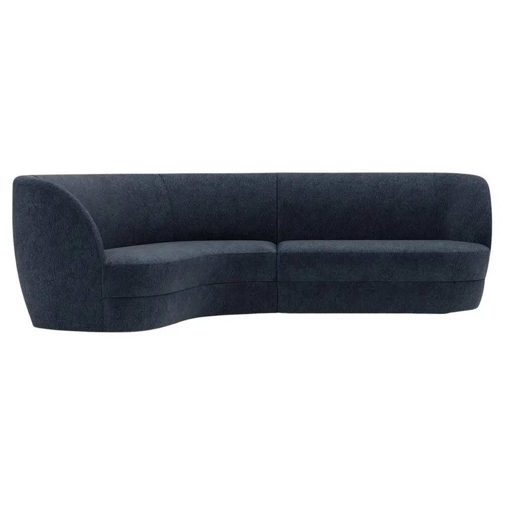 The Naked Sectional Sofa is a modular sofa with inviting curves and a comfortable seating. Handmade with a solid wood base. The Naked Sectional Sofa is available in a number of different materials, finishes and combinations.MaterialTop : velvet fabric, boucle fabricBase : solid wood, choose from solid wood colorsBeech Ash-056-5Paris Dark BlueDimensionsAvailable in several combinationsNaked Sofa Single : W 96” x D 52” x H 31” - Seat height 15”Naked Sectional Sofa 2 Piece : W 130” x D 52” x H 31” - Seat height 15”Naked Sectional Sofa 2 Piece Long : W 146” x D 52” x H 31” - Seat height 15”Naked Sectional Sofa 3 Piece Curved : W 122” x D 130” x H 31” x L 93.5” - Seat height 15”Naked Sectional Sofa 4 Piece : W 130” x D 178” x H 31” - Seat height 15”Pictured inParis Mouse, Natural Beech.