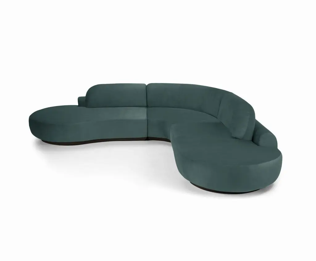 The Naked Sectional Sofa is a modular sofa with inviting curves and a comfortable seating. Handmade with a solid wood base. The Naked Sectional Sofa is available in a number of different materials, finishes and combinations.MaterialTop : velvet fabric, boucle fabricBase : solid wood, choose from solid wood colorsDimensionsAvailable in several combinationsNaked Sofa Single : W 96” x D 52” x H 31” - Seat height 15”Naked Sectional Sofa 2 Piece : W 130” x D 52” x H 31” - Seat height 15”Naked Sectional Sofa 2 Piece Long : W 146” x D 52” x H 31” - Seat height 15”Naked Sectional Sofa 3 Piece Curved : W 122” x D 130” x H 31” x L 93.5” - Seat height 15”Naked Sectional Sofa 4 Piece : W 130” x D 178” x H 31” - Seat height 15”Pictured inParis Mouse, Natural Beech.