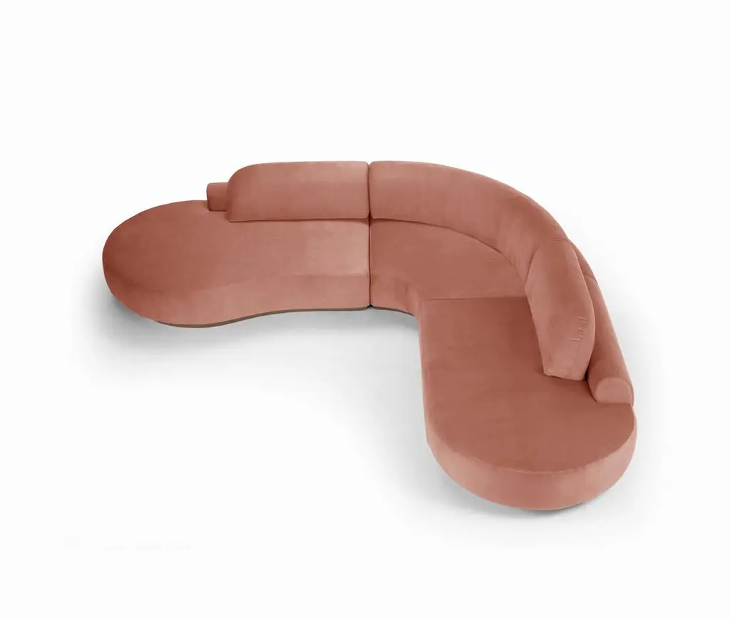 The Naked Sectional Sofa is a modular sofa with inviting curves and a comfortable seating. Handmade with a solid wood base. The Naked Sectional Sofa is available in a number of different materials, finishes and combinations.MaterialTop : velvet fabric, boucle fabricBase : solid wood, choose from solid wood colorsDimensionsAvailable in several combinationsNaked Sofa Single : W 96” x D 52” x H 31” - Seat height 15”Naked Sectional Sofa 2 Piece : W 130” x D 52” x H 31” - Seat height 15”Naked Sectional Sofa 2 Piece Long : W 146” x D 52” x H 31” - Seat height 15”Naked Sectional Sofa 3 Piece Curved : W 122” x D 130” x H 31” x L 93.5” - Seat height 15”Naked Sectional Sofa 4 Piece : W 130” x D 178” x H 31” - Seat height 15”Pictured inParis Mouse, Natural Beech.
