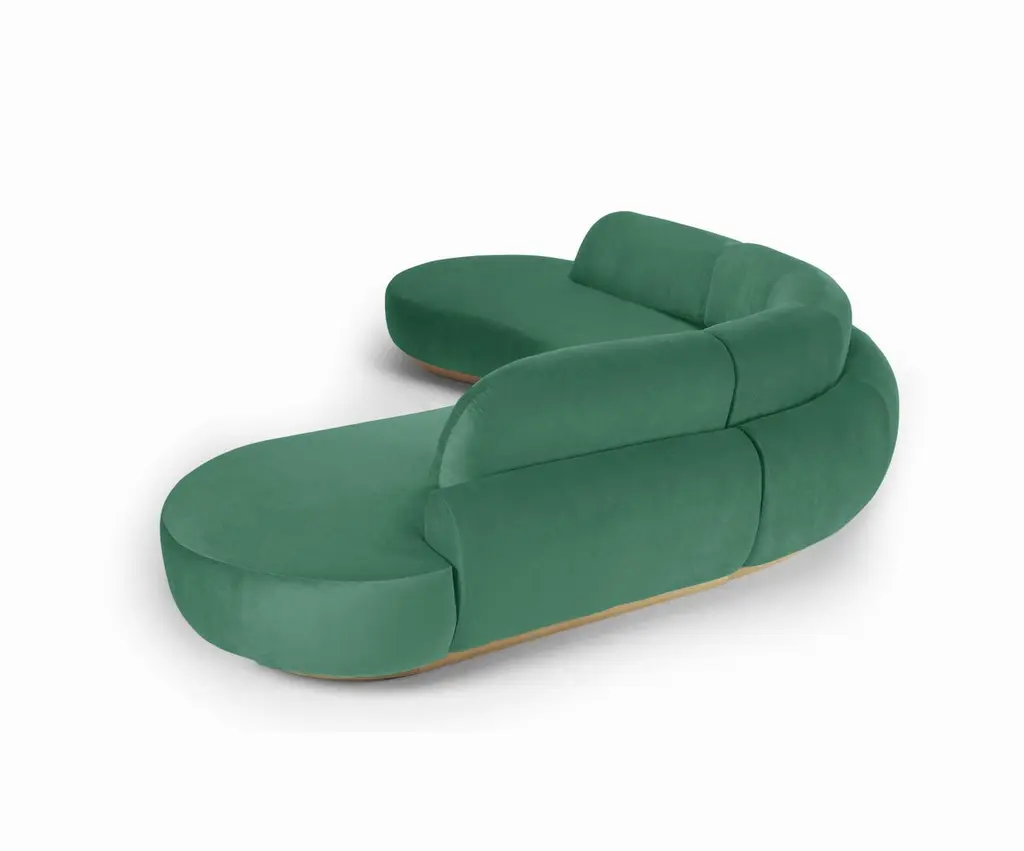 The Naked Sectional Sofa is a modular sofa with inviting curves and a comfortable seating. Handmade with a solid wood base. The Naked Sectional Sofa is available in a number of different materials, finishes and combinations.MaterialTop : velvet fabric, boucle fabricBase : solid wood, choose from solid wood colorsDimensionsAvailable in several combinationsNaked Sofa Single : W 96” x D 52” x H 31” - Seat height 15”Naked Sectional Sofa 2 Piece : W 130” x D 52” x H 31” - Seat height 15”Naked Sectional Sofa 2 Piece Long : W 146” x D 52” x H 31” - Seat height 15”Naked Sectional Sofa 3 Piece Curved : W 122” x D 130” x H 31” x L 93.5” - Seat height 15”Naked Sectional Sofa 4 Piece : W 130” x D 178” x H 31” - Seat height 15”Pictured inParis Mouse, Natural Beech.