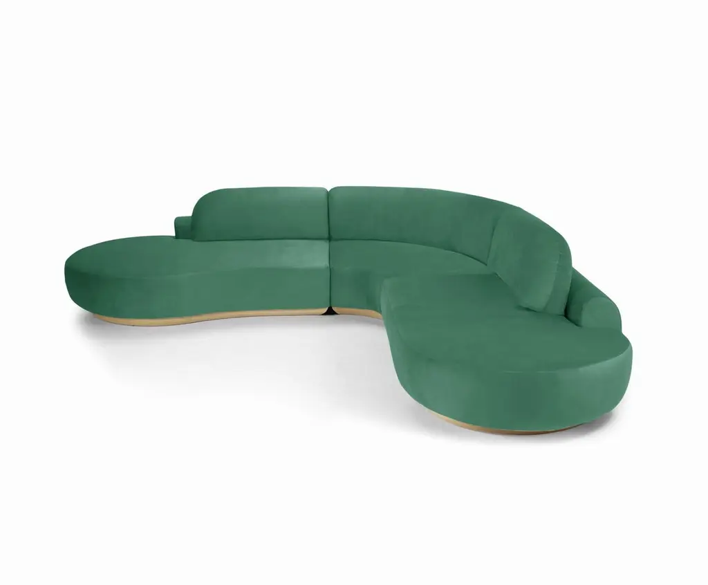Naked Curved Sectional Sofa, 3 Piece With Natural Oak And Paris Green