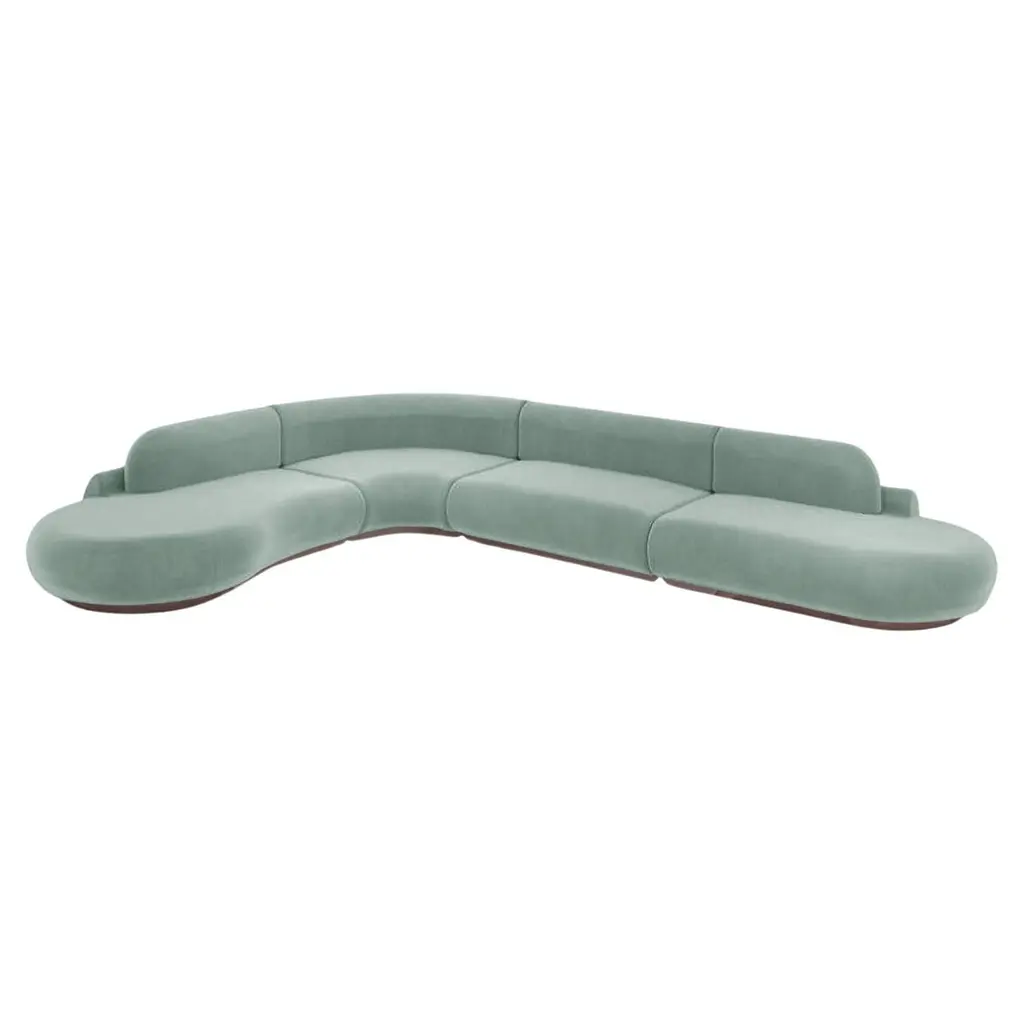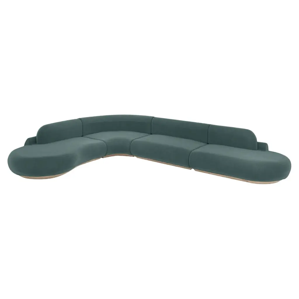 The Naked Sectional Sofa is a modular sofa with inviting curves and a comfortable seating. Handmade with a solid wood base. The Naked Sectional Sofa is available in a number of different materials, finishes and combinations.MaterialTop : velvet fabric, boucle fabricBase : solid wood, choose from solid wood colorsDimensionsAvailable in several combinationsNaked Sofa Single : W 96” x D 52” x H 31” - Seat height 15”Naked Sectional Sofa 2 Piece : W 130” x D 52” x H 31” - Seat height 15”Naked Sectional Sofa 2 Piece Long : W 146” x D 52” x H 31” - Seat height 15”Naked Sectional Sofa 3 Piece Curved : W 122” x D 130” x H 31” x L 93.5” - Seat height 15”Naked Sectional Sofa 4 Piece : W 130” x D 178” x H 31” - Seat height 15”Pictured inParis Mouse, Natural Beech.